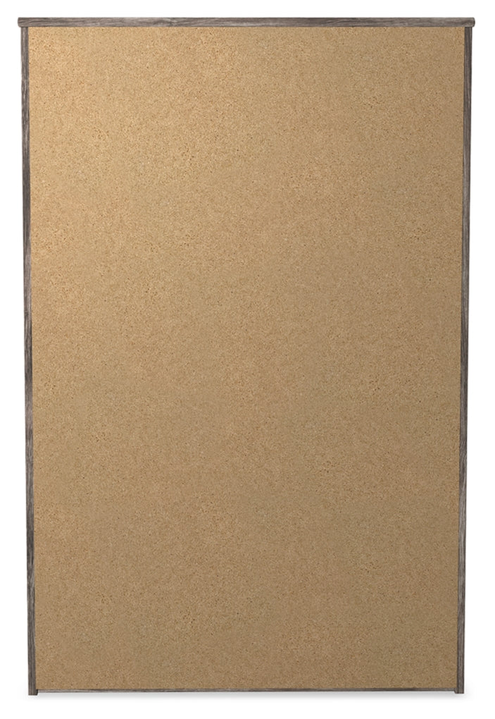With its clean-lined look and modern attitude, this chest of drawers is a fresh style awakening. A warm gray hue over replicated oak grain easily complements other furniture finishes. Smooth drawer fronts with antiqued pewter-tone handles complete the aesthetic.