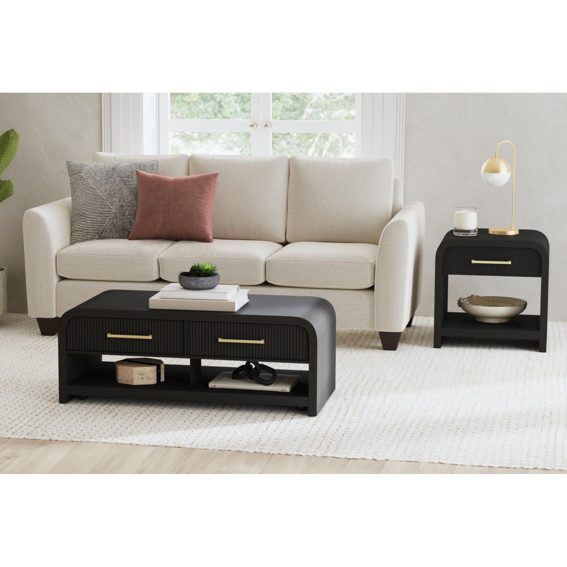 Accent your living space with the sleek and polished design of the Ridgemont 2 Piece Occasional Table Set. Created with delicately curved corners, the tabletopsÕ spacious surfaces are complemented by equally broad open shelves, extending your storage and display options. Convenient casters rest under the coffee table to simplify maneuvering the piece throughout your space, while an end table with a thoughtfully integrated USB port streamlines charging electronics. Whether staging your favorite photos, displaying accent pieces, or hosting essential table lamps, the Ridgemont 2 Piece Occasional Table Set is the perfect collection to add a sophisticated touch to your home.