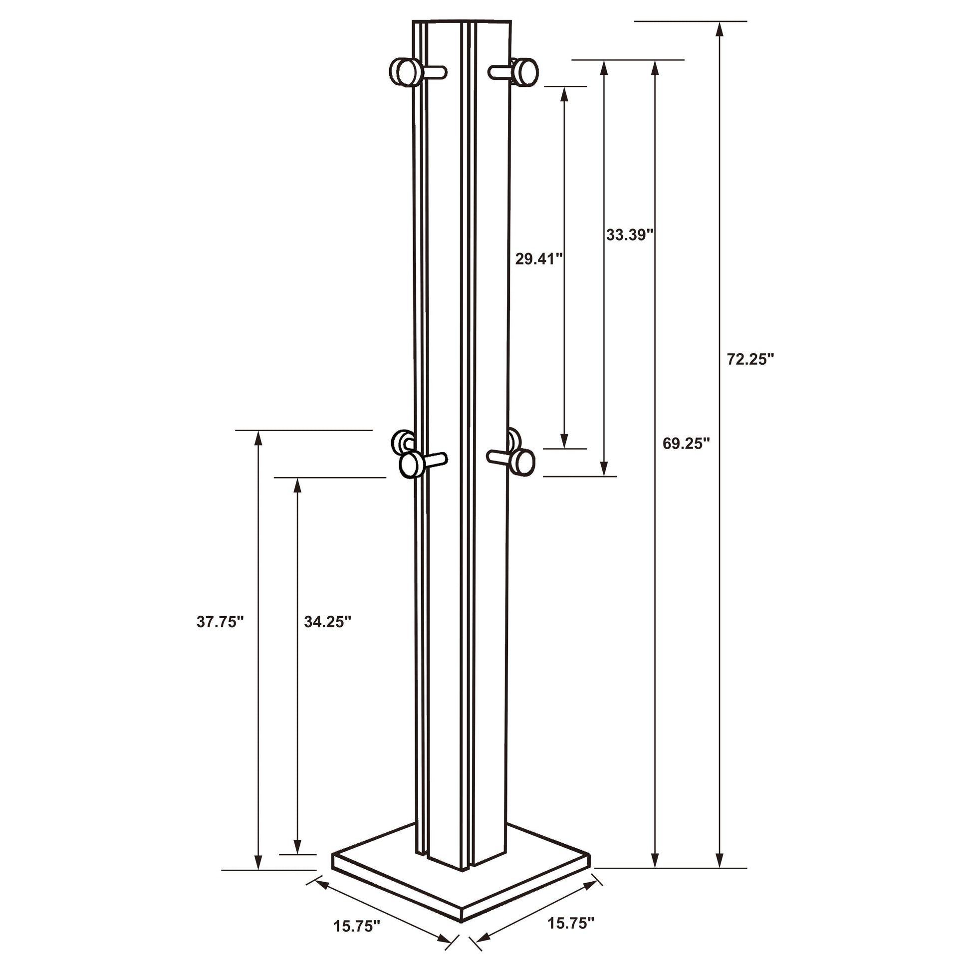 Mejore la organización de su hogar con este elegante perchero de estilo moderno de mediados de siglo. Fabricado con madera dura asiática resistente, tableros de partículas y metal, este perchero combina funcionalidad con un diseño elegante. El acabado en papel de melamina color nogal le da un toque cálido y natural, mientras que los ganchos metálicos negros en contraste con tapas de madera ofrecen estilo y utilidad. Perfecto para guardar chaquetas, sombreros, bolsos, cinturones e incluso las correas de su mascota, este perchero es un complemento versátil para cualquier entrada o dormitorio.