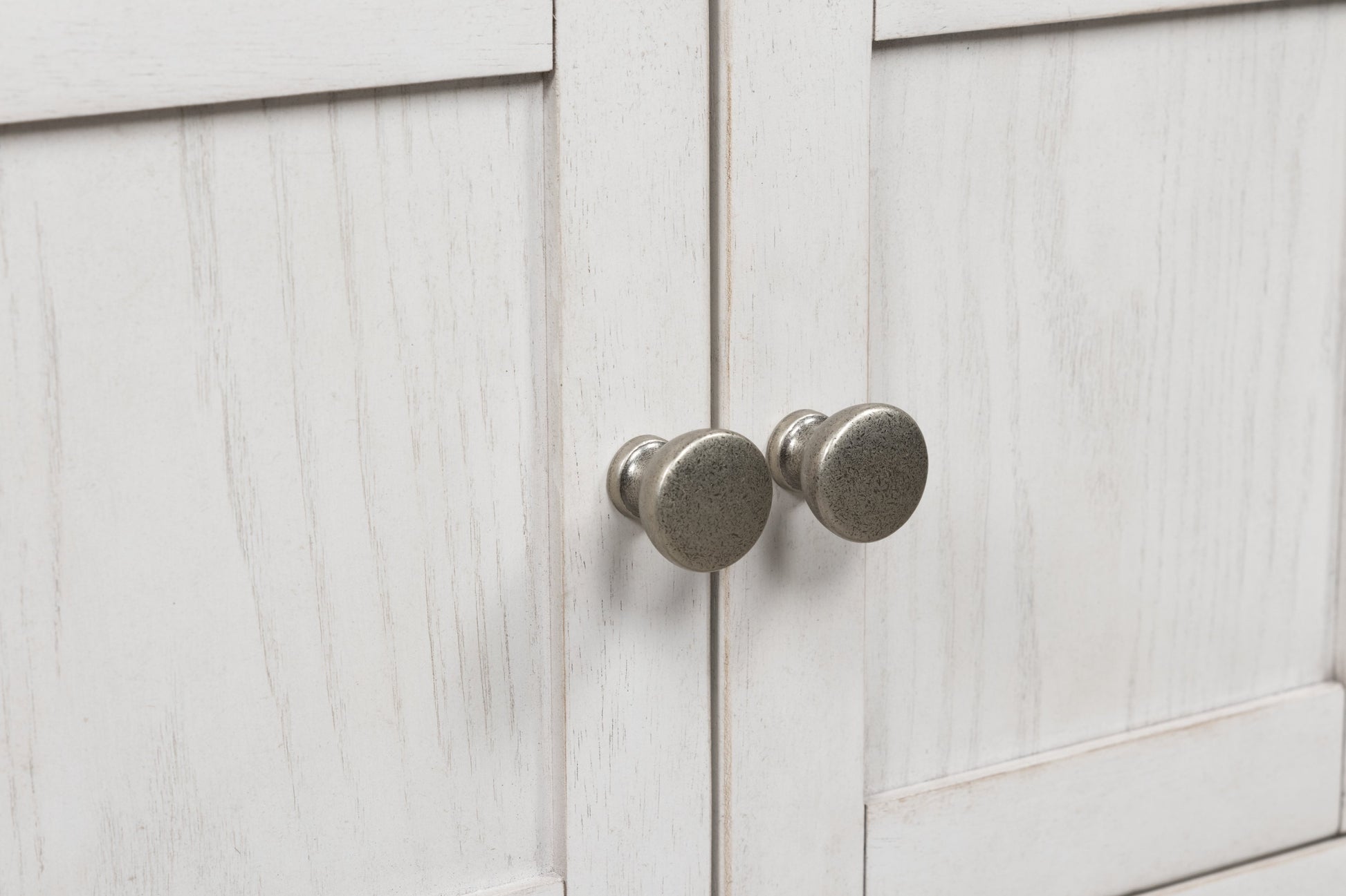 This counter height dining table brings an air of casual charm to mealtime. With its antiqued white finish, farmhouse-style dining has never been so fashionable. And this curated approach to everyday function is loaded with storage options, from cabinets to drawers to wine shelves. All that’s missing is you and your family.