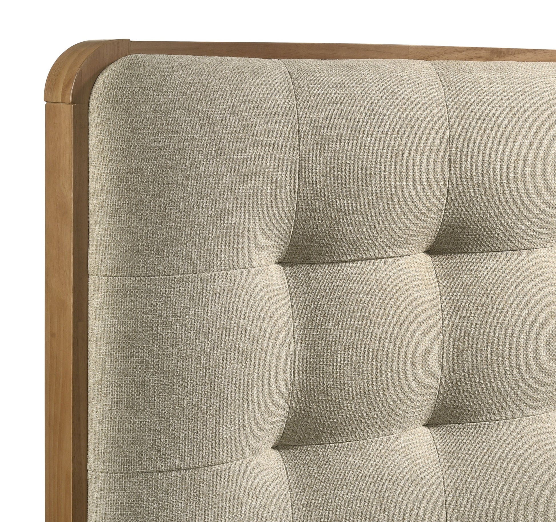 Dale un toque de encanto rural a tu dormitorio con esta cama de inspiración de mediados de siglo, elaborada con maestría en pino, madera de ingeniería y chapa de nogal para mayor durabilidad y estilo. El cabecero tapizado presenta un acolchado grueso y capitoné cuadrado que le da un toque de elegancia y comodidad, mientras que el pie de cama, elegante y discreto, completa su refinada silueta. Las esquinas redondeadas y las patas cónicas realzan el diseño retro-moderno, y su estructura elevada le aporta un aspecto limpio y aireado. Perfecta para crear un remanso de paz y estilo en el dormitorio.