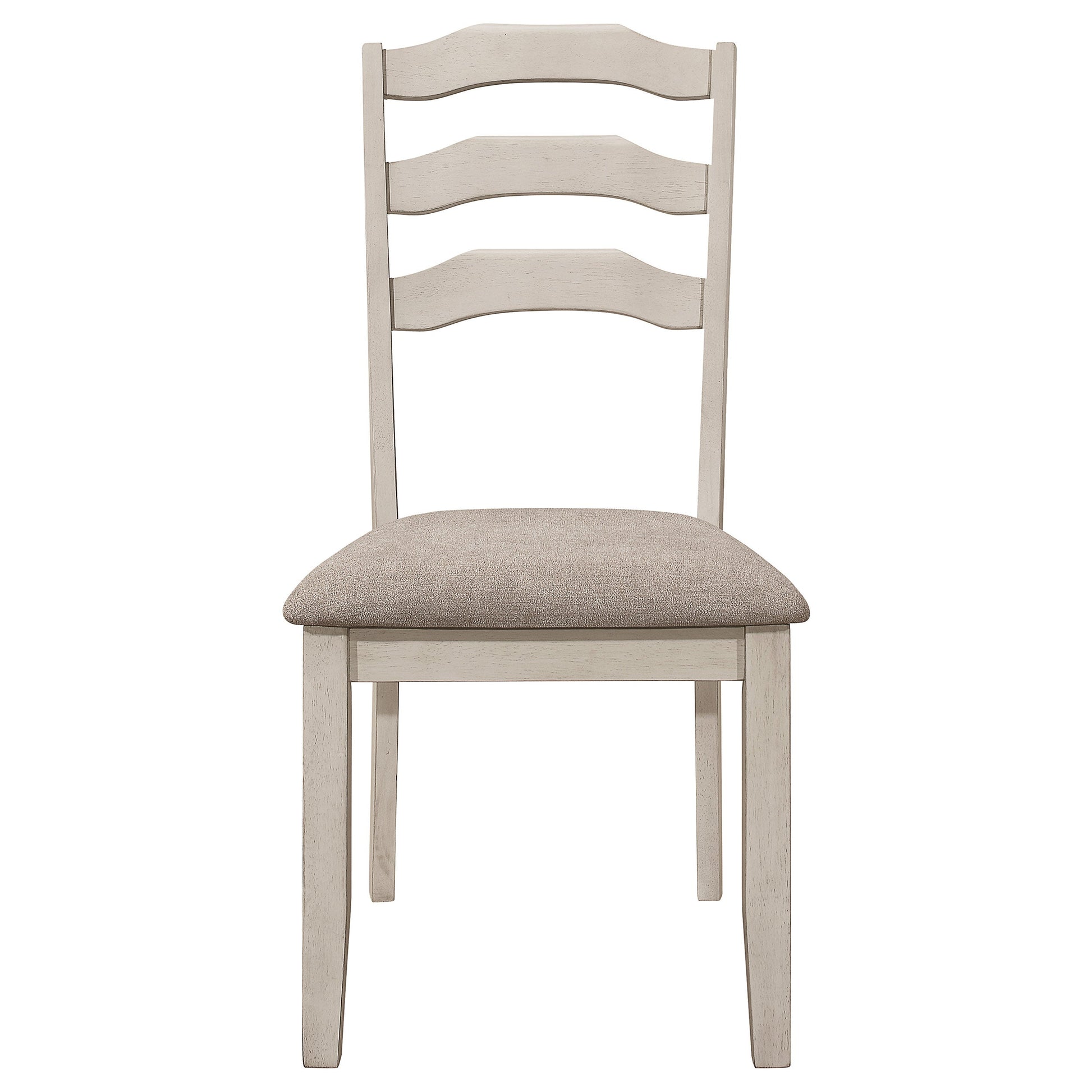 Realce el ambiente acogedor de su comedor con nuestras modernas sillas auxiliares de estilo rústico y costero. Estas sillas con respaldo de escalera irradian un encantador encanto rústico con su acabado crema envejecido en las patas y el respaldo. El asiento tapizado en tela de poliéster color caqui garantiza una comodidad óptima durante las comidas.