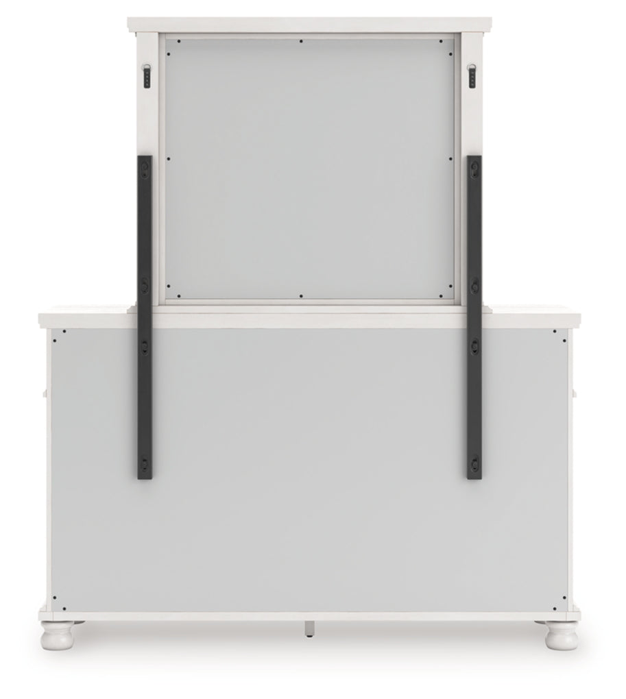 - Mirror attaches to back of dresser