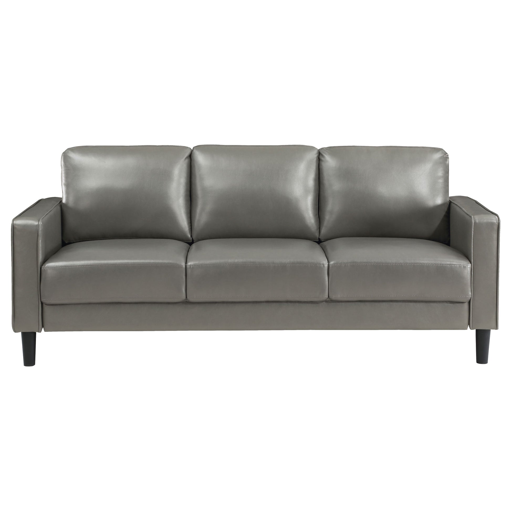 Crea una elegante sensación de cohesión en tu sala de estar con un moderno juego de sofás de dos piezas. Con un toque de elegancia, presenta una suave tapicería de piel sintética sobre mullidos cojines, perfecto para relajarse o entretenerse. Tanto el sofá como el loveseat presentan una silueta estructurada, con brazos articulados y patas cónicas que le dan un toque de altura. Los cojines están unidos para una apariencia suave y uniforme, con sinuosos muelles bajo los asientos y correas en el respaldo para un excelente soporte. Su color neutro crea el tono que buscas, perfecto para un espacio de estar cuidado.