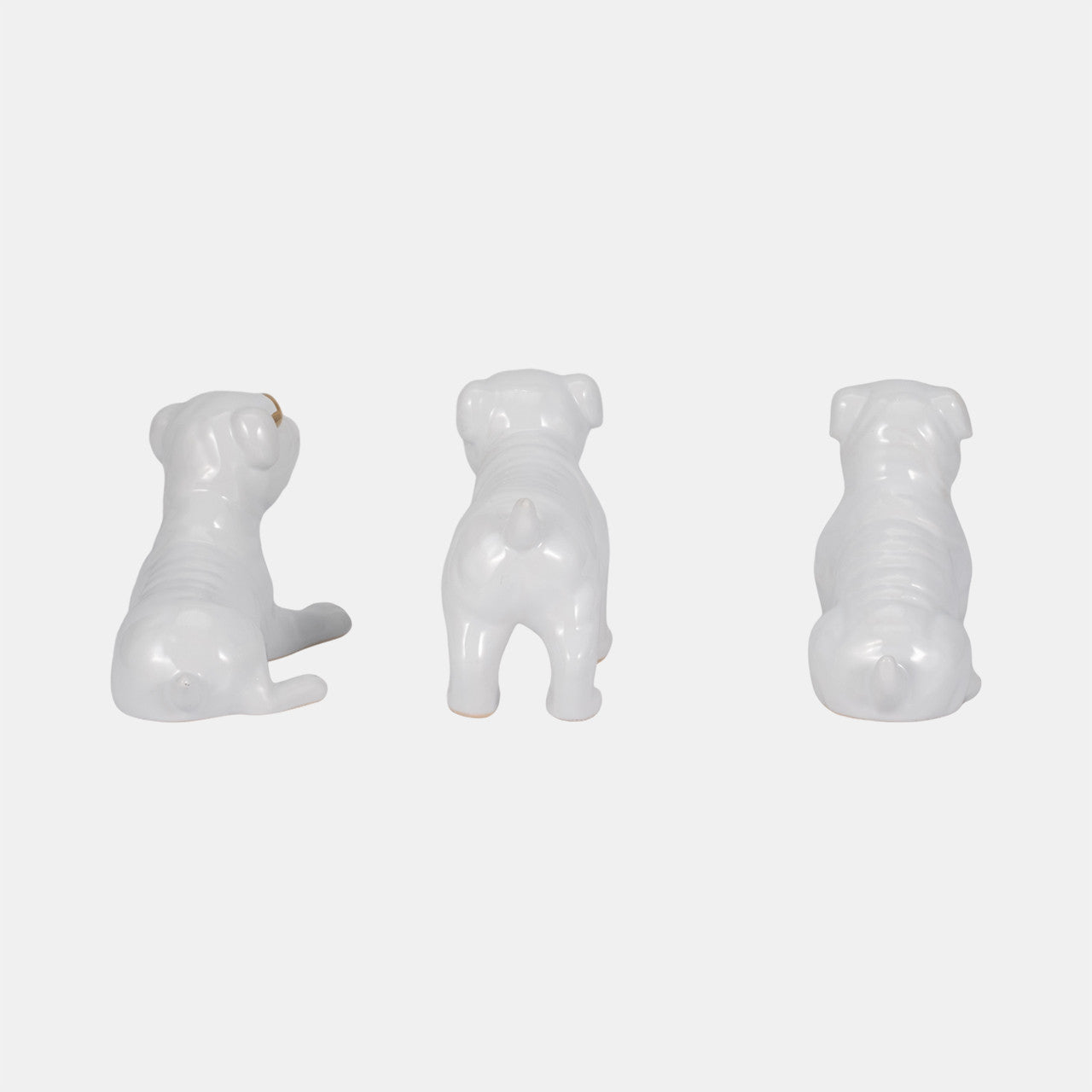 This charming set of three white pug figurines, each adorned with stylish gold sunglasses, adds a playful yet elegant touch to any space. Featuring one sitting, one standing on all fours, and one lying down, these 7-inch sculptures bring personality and warmth to your decor. Perfect for dog lovers seeking a unique accent, they blend whimsy with sophistication effortlessly.