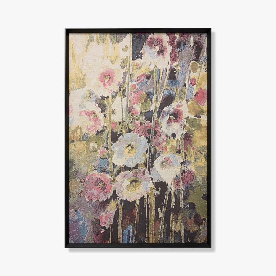 Saku is large wall art with a dripping floral design and the subtle texture of an oil painting, a colorful accent for modern home decor. Saku is made in India from cotton and polyester, and custom-framed by Loloi in the USA, measuring 59" x 39".