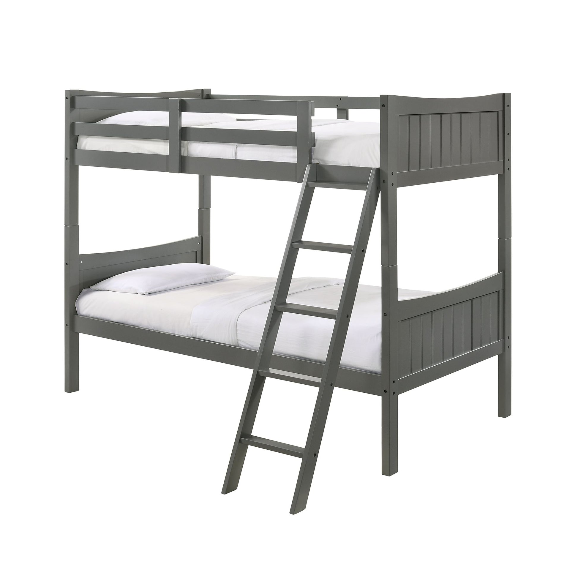 Transform your child's bedroom with Sami Twin over Twin Bunk Bed. Crafted in durable, rubberwood and finished in a rich gray. Featuring clean lines and a built-in stepladder. This bunk bed is a space saver, leaving plenty of room for other dcor and furniture. Sturdy, stylish, and safe the Sami Bunk Bed is the perfect transitional piece to add to your child's space.