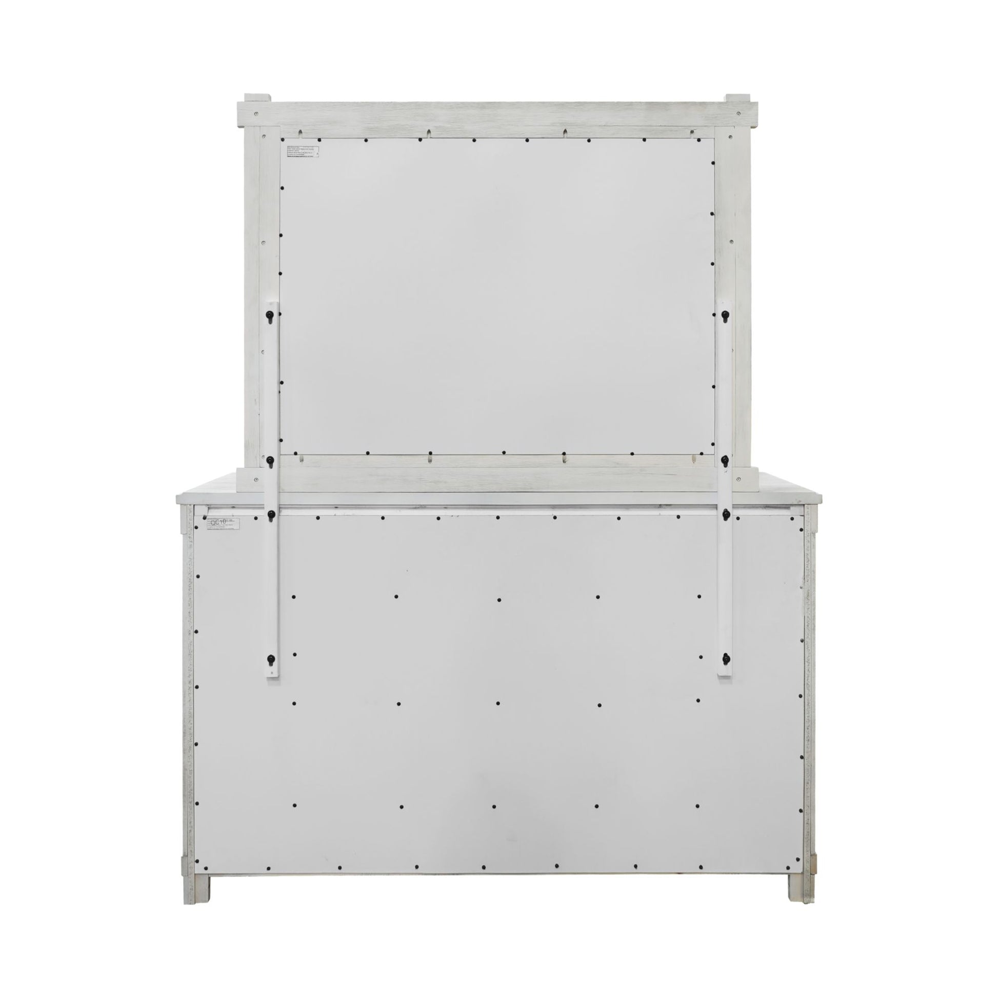 The Scott 7-Drawer Dresser with Mirror is the perfect addition to your home! This dresser offers plenty of storage space for your clothes. The top drawer has black, felt lining to better protect your more delicate belongings. Dark metal drawer pulls complement the white washed, distressed finish beautifully. This dresser will easily match any existing decor you might have. Add this dresser to your home today for a transitional farmhouse look that will last year after year!