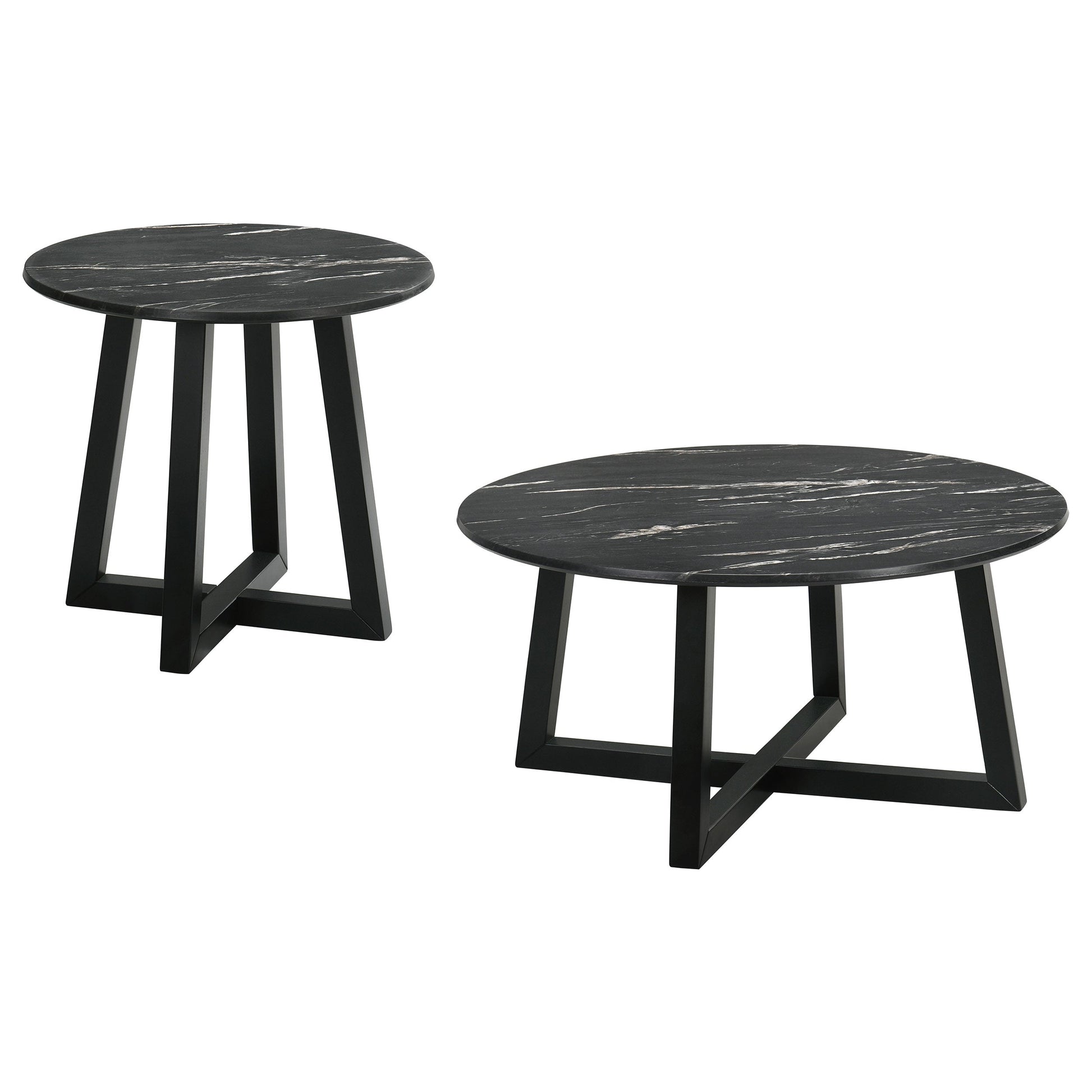 Juego de mesa de centro con tapas laminadas imitación mármol negro para una apariencia sofisticada.