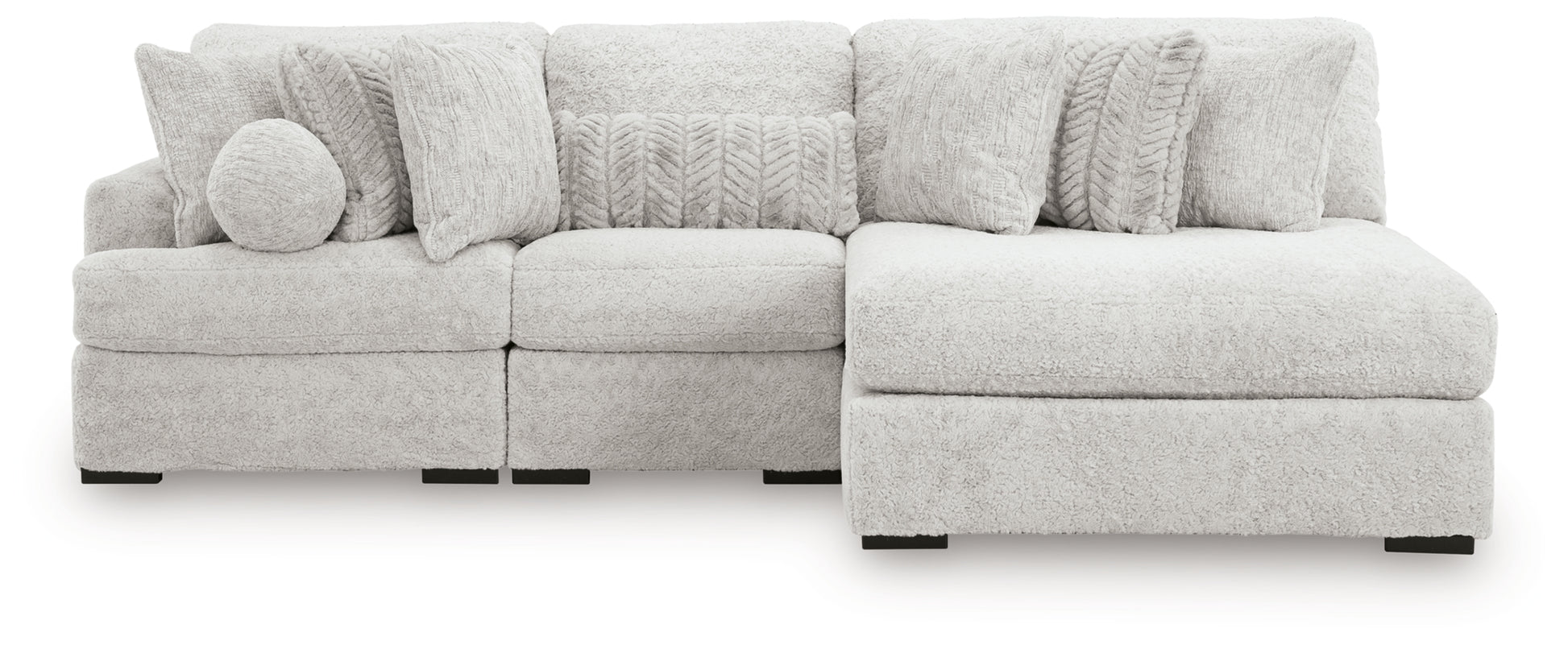 - Includes 3 modular pieces: left-arm facing corner chair, armless chair and oversized armless chaise
