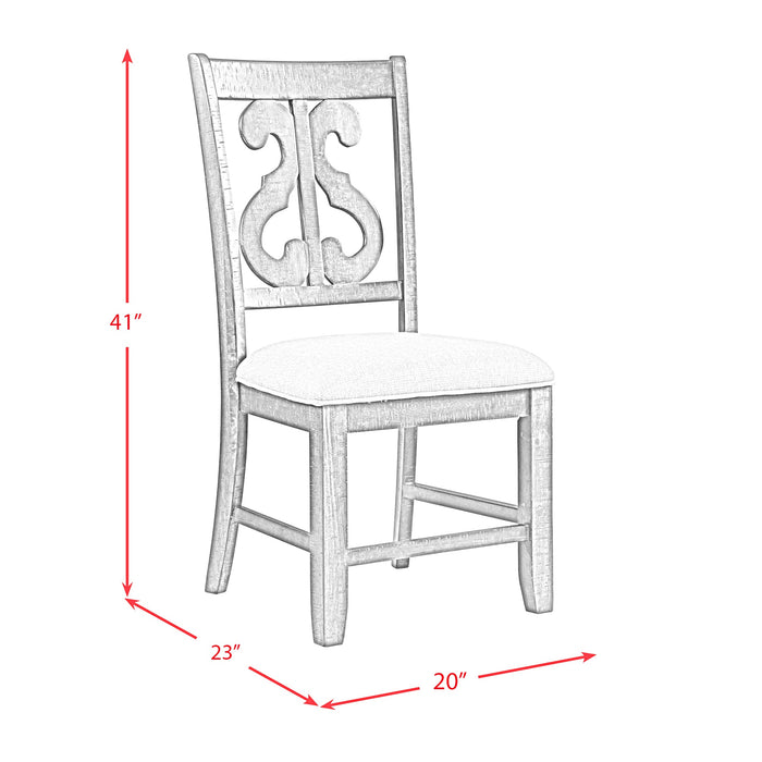 Este juego de mesa de comedor redonda será una excelente pieza central en su comedor o desayunador. La mesa se apoya en un elegante pedestal con detalles de volutas invertidas. Las cuatro sillas auxiliares tienen respaldo con diseños de volutas y asientos tapizados en color lino.