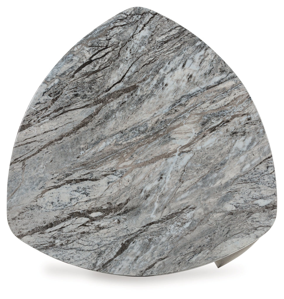 Striking contemporary form, meet canÕt-miss function. This end table pairs the look of faux gray marble with a weathered gray wood grain for a simply chic approach to monochromatic style. Perfect as a perch for remotes, a lamp or morning coffee, itÕs a luxe take on everyday living.