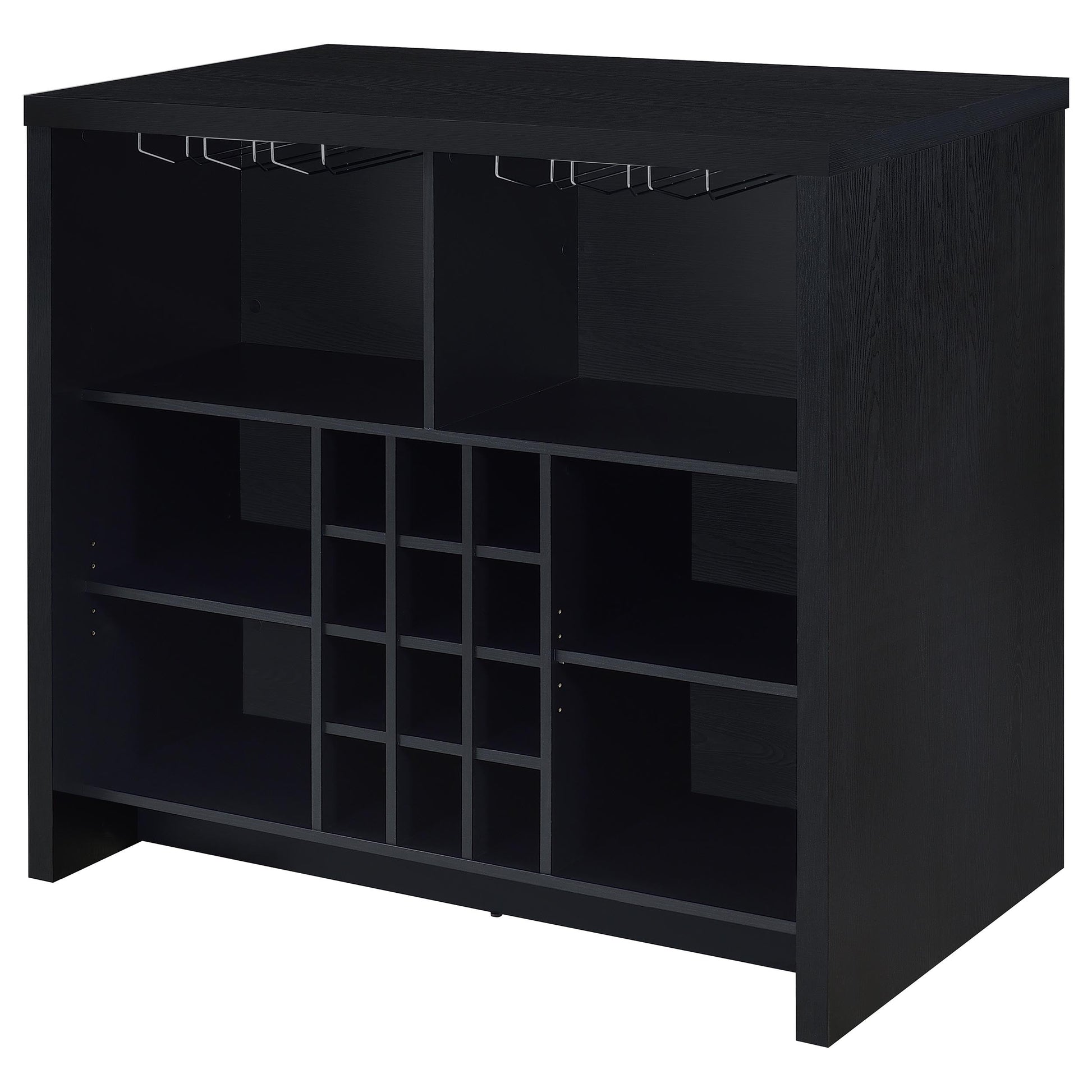 Este bar para el hogar combina estilo moderno y funcionalidad, fabricado con madera de ingeniería y chapa laminada para un diseño elegante y duradero. Perfecto para recibir invitados, cuenta con una rejilla para botellas de vino con capacidad para 12 botellas, múltiples estantes abiertos para mayor organización y soportes metálicos integrados para copas para colgarlas de forma segura. Con sus versátiles soluciones de almacenamiento y su robusta construcción, este bar es el complemento ideal para cualquier hogar, manteniendo tus artículos esenciales para el entretenimiento organizados y accesibles con estilo.