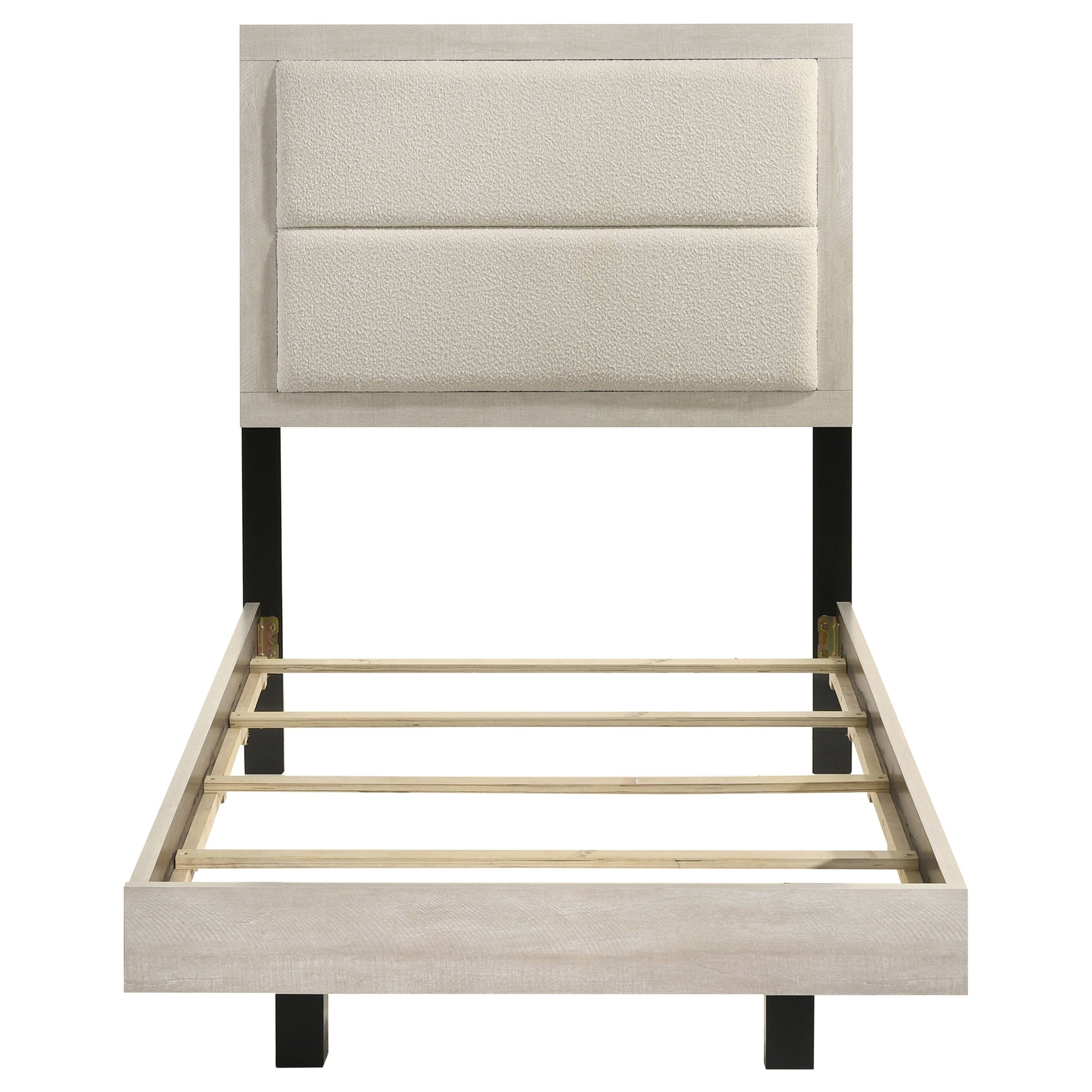 * Cabecero tapizado en tejido bouclé color crema para mayor suavidad y estilo.