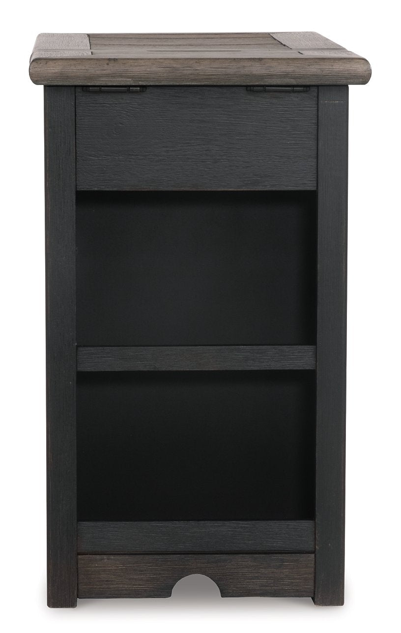 Con un estilo shabby chic y un toque rústico, esta mesa auxiliar es la sensación del mundo del diseño actual. La veta de la madera se aprecia en todo su encanto natural a través de la superficie desgastada de color gris-marrón. Una bandeja extraíble con preciosos herrajes tradicionales incluye dos portavasos. Carga tus dispositivos con la práctica estación de carga.| Dimensión completa | 14 ancho x 24 profundidad x 23 alto |