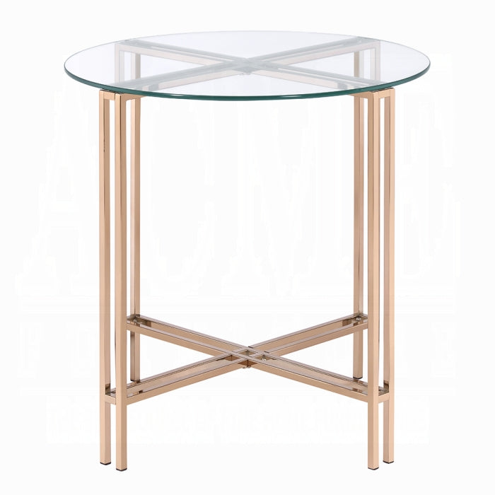 Te encantará esta mesa auxiliar Veises. Tiene patas doradas y un tablero de cristal transparente, lo que la hace elegante y sofisticada sin ser recargada. Además, es redonda, ¡así que combinará a la perfección con el resto de tu decoración! Es una pieza ideal para tu sala o dormitorio.