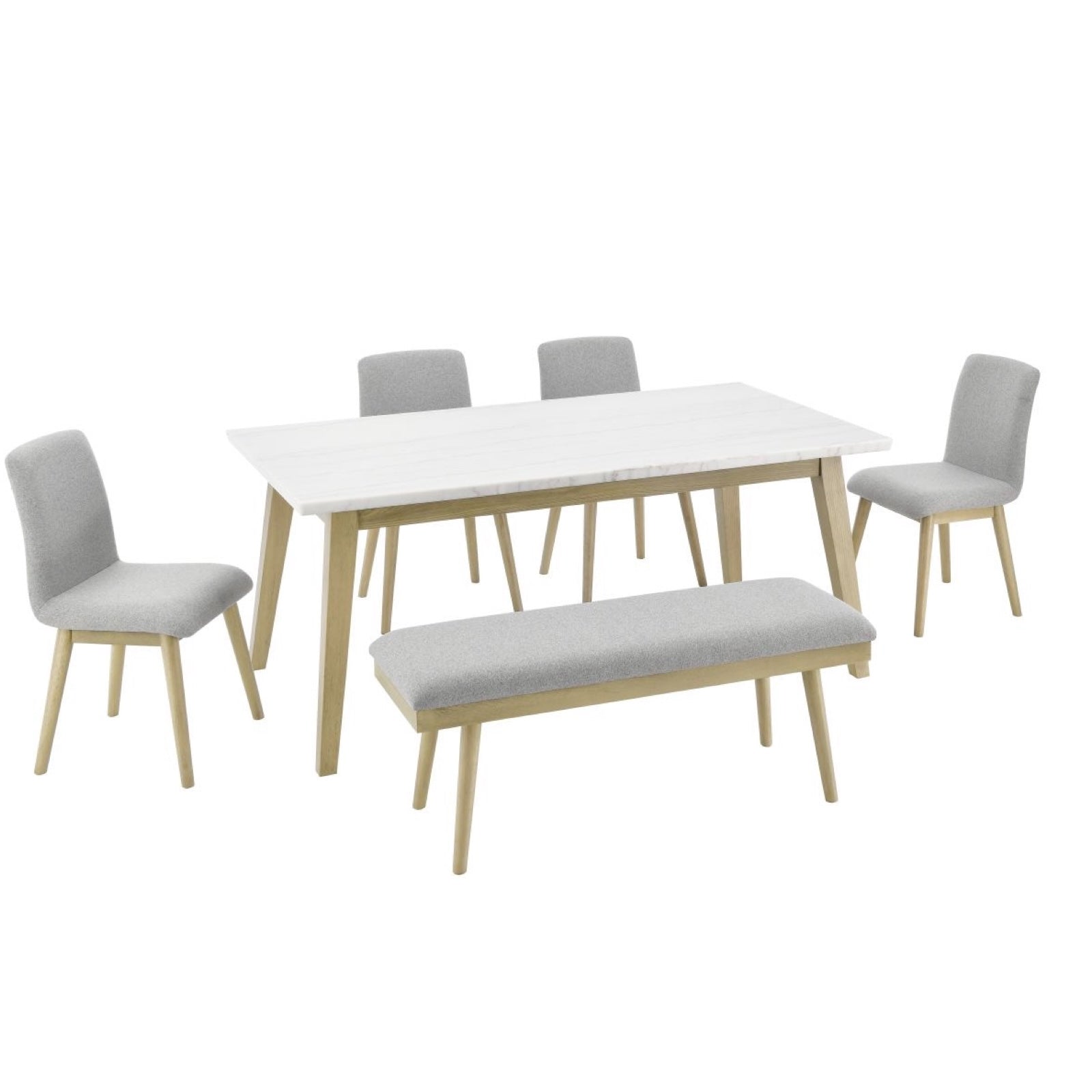 La elegancia moderna se une a la funcionalidad cotidiana en el juego de comedor Vida Marble. Inspirado en el diseño moderno de mediados de siglo y escandinavo, este juego presenta líneas limpias, cálidos tonos de madera y una impresionante cubierta de mármol que sirve como pieza central atemporal. Disponible en ambos... Opciones de 6 y 7 piezas, es perfecto para reuniones grandes o pequeñas.