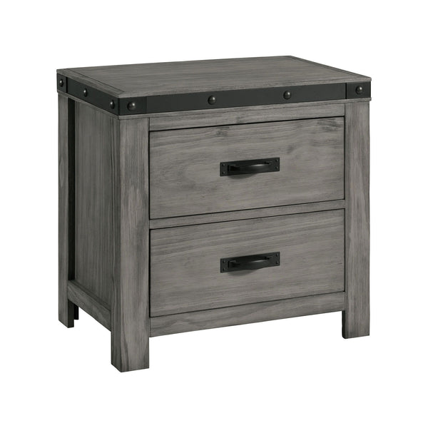 ¡La mesita de noche de 2 cajones Wade es la pieza definitiva para tu hogar! Este elemento básico del dormitorio viene con dos cajones espaciosos; Perfecto para guardar fácilmente todas tus pertenencias junto a la cama. El cajón inferior cuenta con una capa a prueba de polvo para ayudar a proteger sus pertenencias. Los tiradores de los cajones y los adornos de la parte superior de la mesita de noche son de metal con acabado negro. A lo largo del borde de la mesa de noche hay pernos decorativos que añaden un toque extra de estilo. Esta mesita de noche tiene un acabado en gris neutro, lo que facilita combinarla con cualquier decoración existente o encontrar una excusa para rehacer completamente su dormitorio. Tenga en cuenta que las vetas de la madera varían pieza por pieza y no se verán exactamente como en la imagen.GC0528