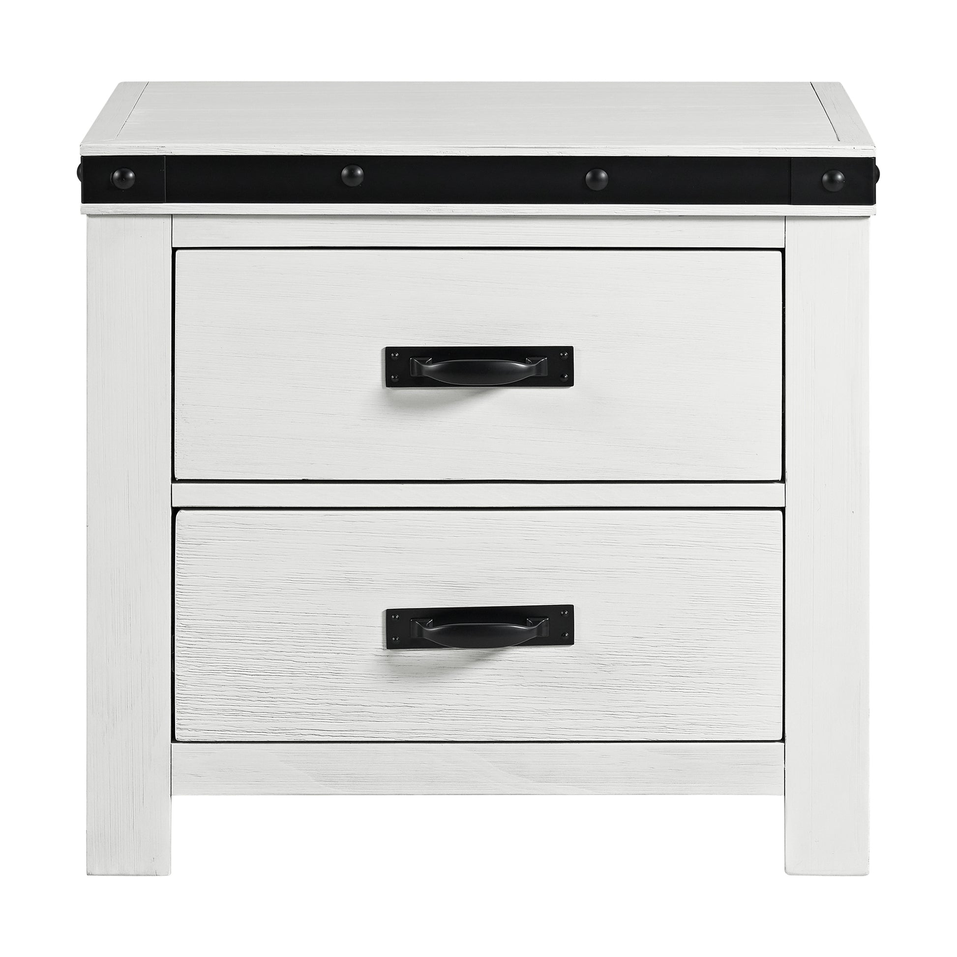 The Wade Youth Nightstand in White brings a modern touch to any room with its sleek black accents and contemporary design. Crafted with stylish black rivet detailing on the black metal trim, it exudes an industrial edge. Featuring spacious drawers with smooth ball bearing glides, this nightstand offers ample storage for clothes and accessories. A dust-proof layer on the bottom drawer ensures your belongings stay clean, while the top drawers are lined with black felt to protect delicate items. Compact in design, itÕs perfect for smaller bedrooms, combining functionality and modern style in one stunning piece.