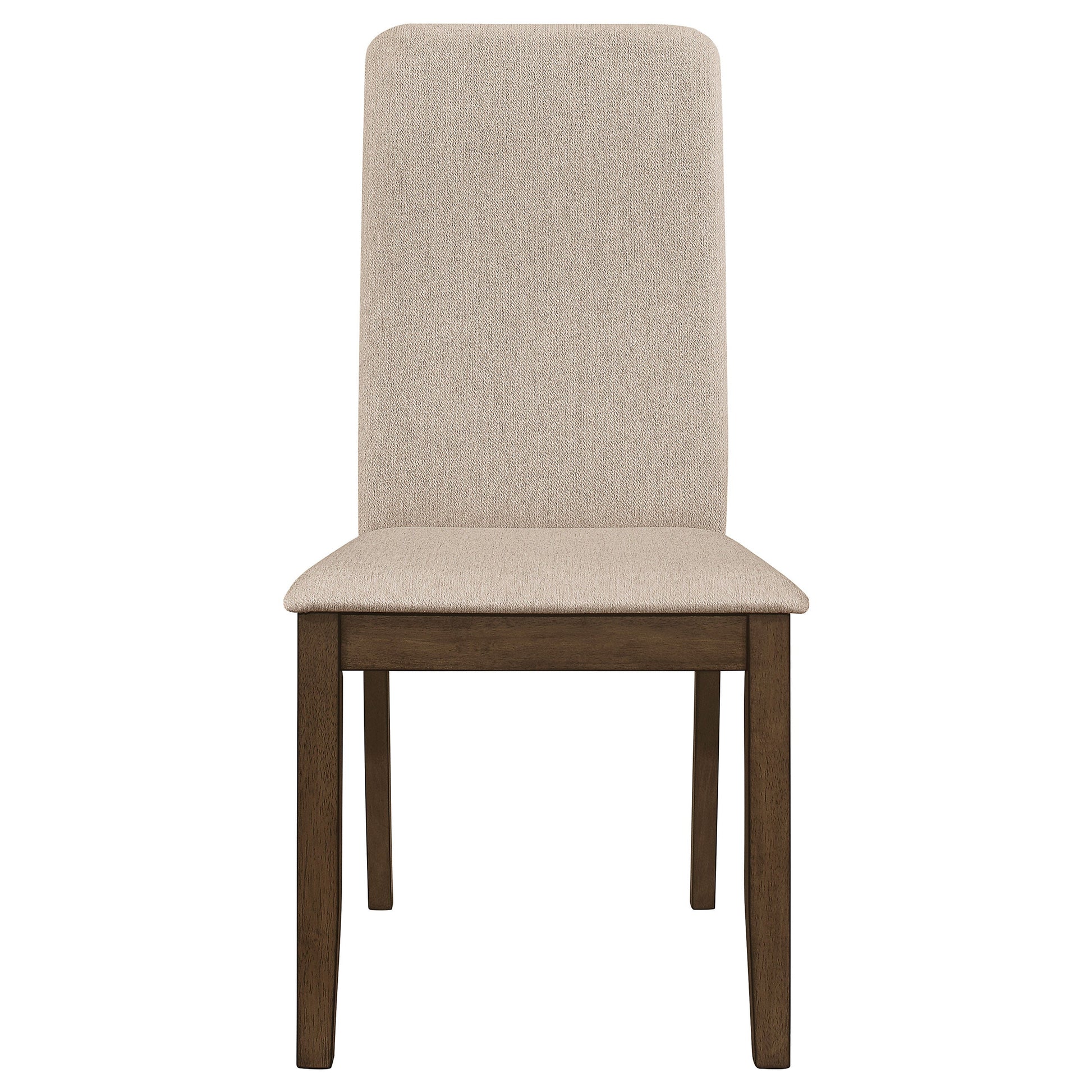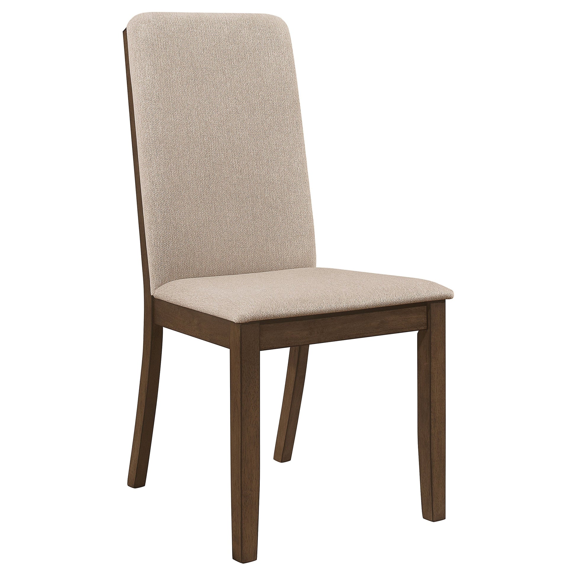 Consienta a su familia con una experiencia gastronómica confortable. Esta hermosa silla de comedor tapizada está diseñada para la comodidad, con un respaldo alto y firme y un acolchado mullido y acogedor. Su suave y suntuosa tela de sarga color café con leche le da un aspecto ligero y etéreo. La robusta base de madera luce un cálido acabado en nogal medio para un elegante estilo bicolor. Cualquier comedor se transformará con el impecable diseño de esta elegante pieza.