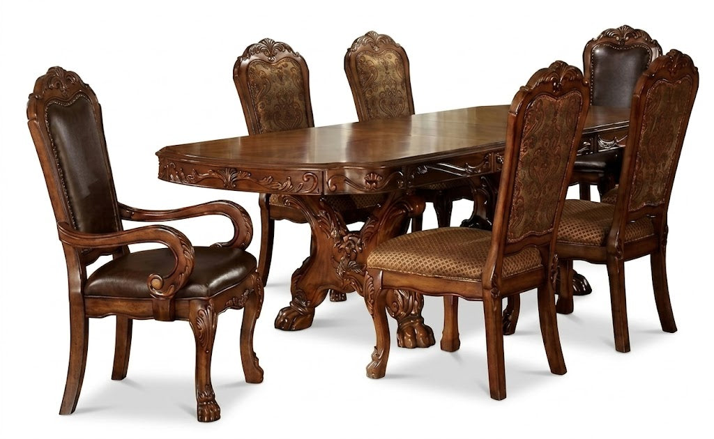 Rico en detalles tradicionales, el juego de comedor Dresden de 7 piezas destaca por sus tallados ornamentados, texturas lujosas y una elegancia atemporal. Con una mesa de caballete esculpida y seis sillas auxiliares de diseño intrincado, este juego transforma cualquier comedor en un espacio refinado y majestuoso.