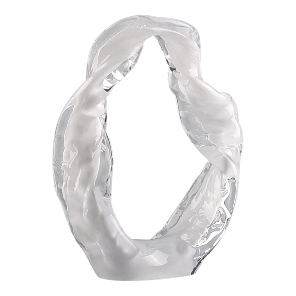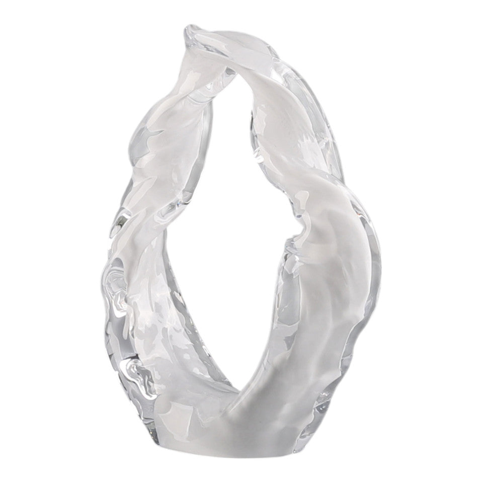 Elevate your décor with the 10" Sidon Glass Sculpture, a striking abstract accent piece. Crafted from clear or translucent glass, its dynamic twisted loop design adds movement and sophistication to any tabletop, shelf, or mantel. Compact yet eye-catching, this sculpture is perfect for modern and contemporary interiors.