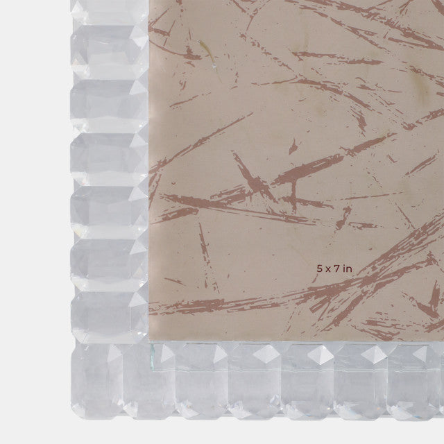 Elevate your cherished memories with this 5x7 beveled edge photo frame, adorned with sparkling crystals all around. Its clear design enhances any décor while adding a touch of elegance and brilliance to your favorite photos. Perfect for showcasing special moments with style.