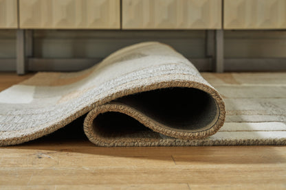 Abstract imagery and a medley of neutral tones give this rug loads of visual interest and a lot of versatility. The hand-tufted pile is rich with feel-good texture. Be it in casual gathering places or formal spaces, it has a look that feels right at home.