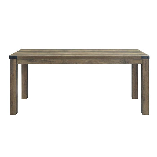 Designed in a Parsons-style silhouette, with harmonious and clean, square lines, the Abiram dining table also boasts small-space sensibility. The generous surface, yet slimmer frame of this table lets it double as a dining table or versatile work-from-home space. It features a distressed-wooden effect on the tabletop and offers decorative metal corner protectors.