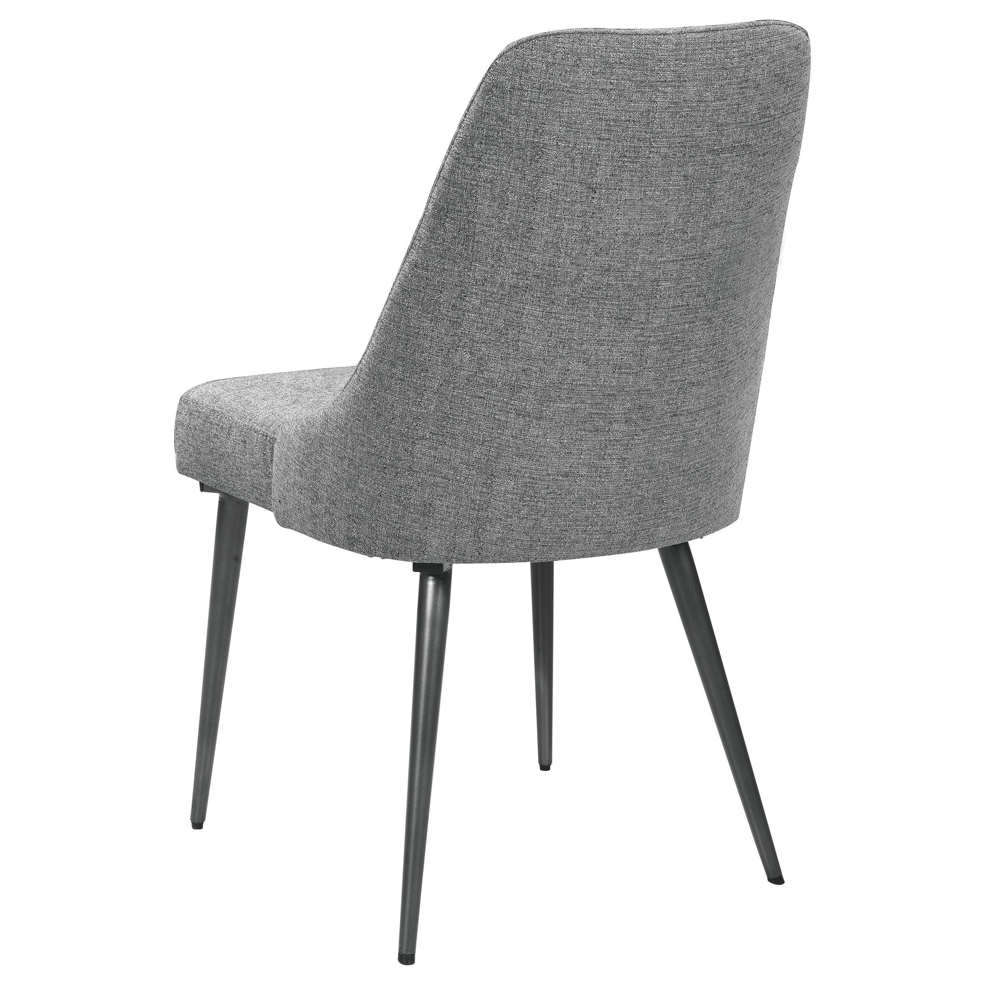 Inspire a modern motif with the clean lines and retro-like feel of this armless dining chair. Mid-century modern design gets a contemporary makeover with sleek monochrome hues. Thin, tapered legs in a gunmetal grey finish add a sophisticated and open feel. Grey textured fabric covers the back and seat cushions, with a wingback-like silhouette. Charming details and design create a clean piece that looks great around small and large tables.