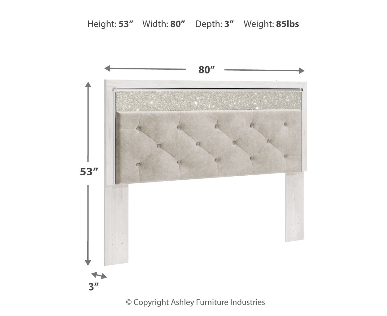 The epitome of fashion-forward design, this king/California king upholstered panel headboard is a beautiful blend of comfort and luxury. Shiny chrome-tone accents, a pearlized finish and button-tufted upholstery bring a glam touch to the richly rustic appearance. Remote-controlled LED lighting adds style and modern conveniences to your restful retreat.