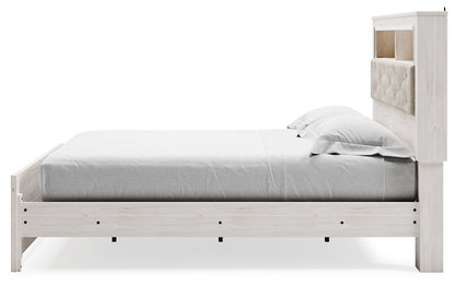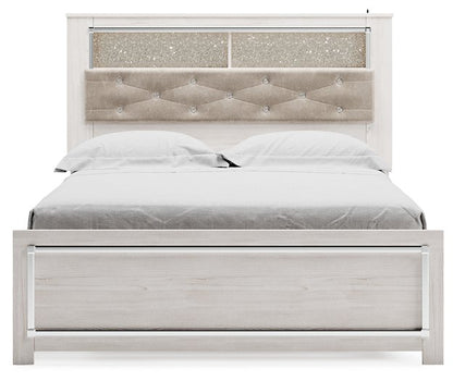 - King upholstered panel bookcase bed (headboard, footboard and rails)