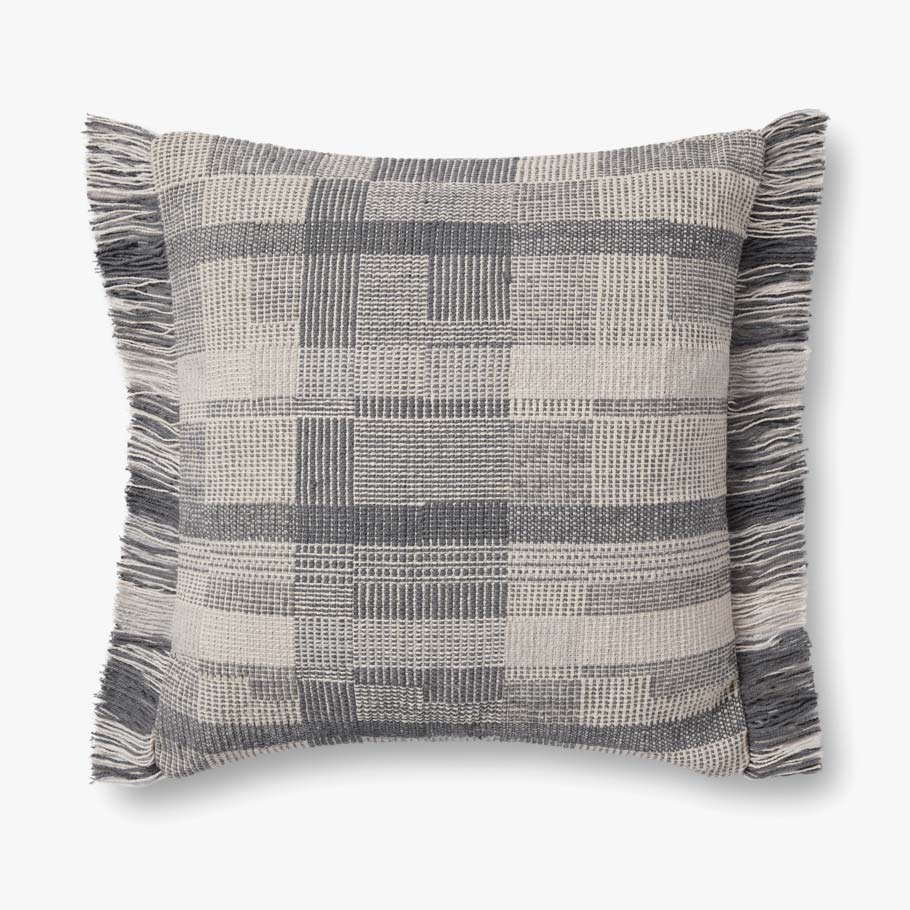 Introducing our meticulously hand-woven pillow, crafted with care in India from a blend of cotton and other fibers. This artisanal piece features a hidden flap closure and an antique bronze finish zipper for a touch of vintage charm. Its unique fringe edge treatment adds a bohemian flair, while the soothing beige back enhances its versatility in styling. (18 x 18 inches)
