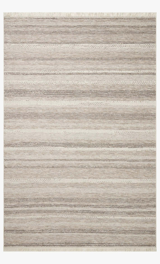 The Malibu Collection is an indoor/outdoor area rug by Amber Lewis x Loloi that channels the casual modern vibe of the beach city it's named after. The rug's neutral-toned geometric prints are easy to match with a range of decor styles, while a hint of fringe adds to the breezy aesthetic. This collection is power-loomed of 100% polypropylene that's made to resemble natural fibers, but which can withstand the outdoor elements and indoor high-traffic areas like mudrooms, playrooms, and hallways. Spot clean, vacuum, or hose off completely as needed. Made in Egypt and OEKO-TEX certified, ensuring its materials don't contain harmful substances.