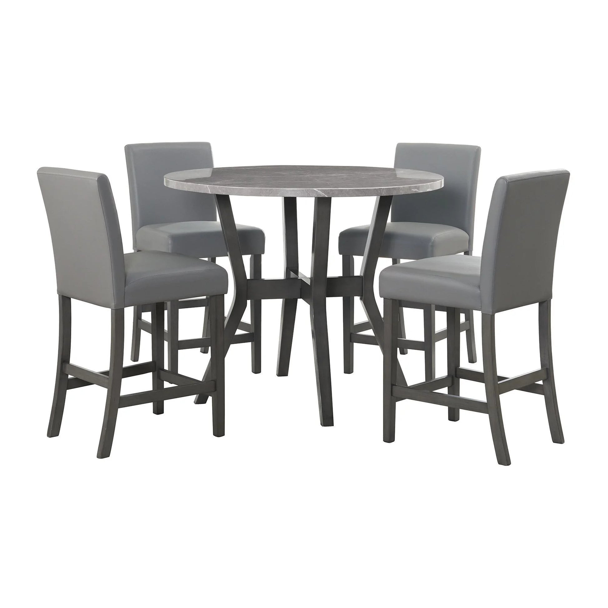 Elevate your kitchen or dining space with the Ambridge 5-piece round counter set. Featuring a sleek faux marble tabletop and a brushed grey finish, this set offers a sophisticated yet practical design. The counter-height set includes four armless upholstered chairs in easy-to-clean grey PU, perfect for casual dining or entertaining guests. Its clean, modern aesthetic complements a variety of decor styles.