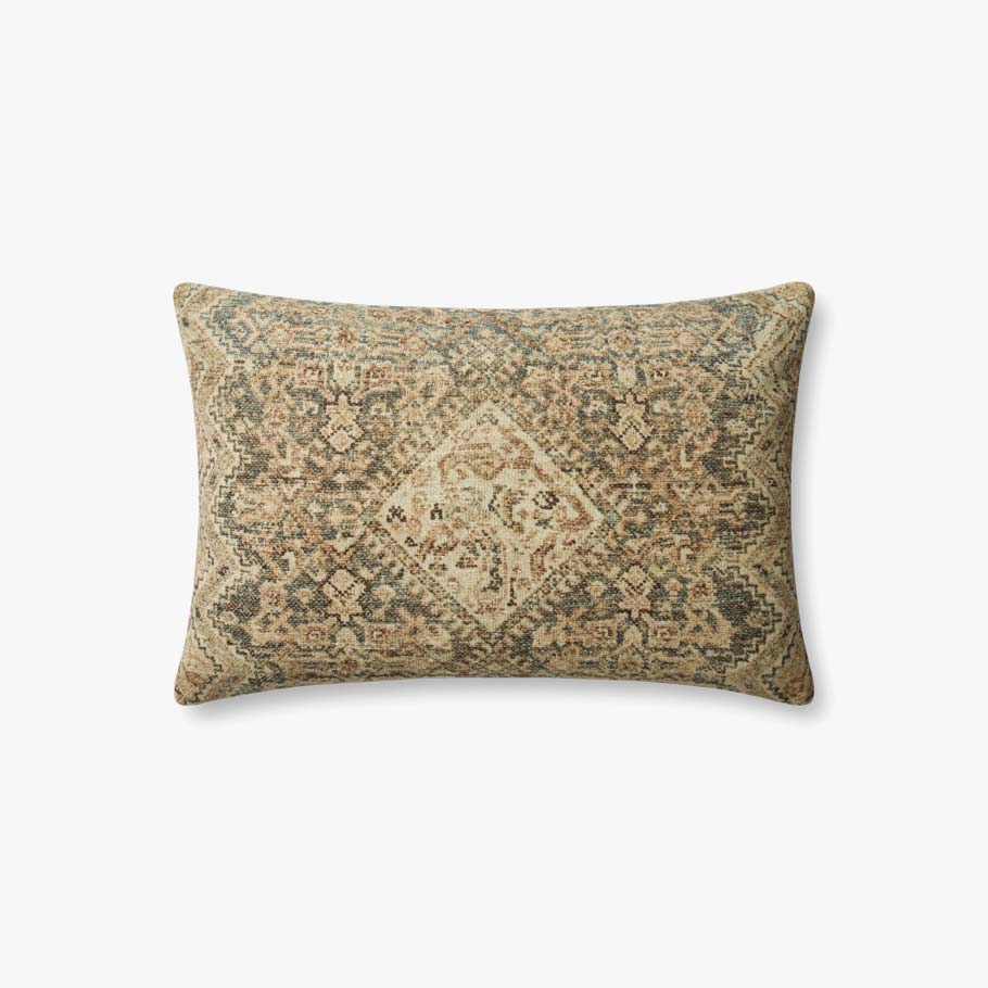 Stylish sand pillow from India, expertly machine-woven with a blend of cotton and polyester for durability and comfort. It features a hidden flap closure and an antique bronze zipper embellished with the iconic Loloi logo. The knife edge treatment adds a modern touch, while the natural canvas or duck cloth back color enhances its rustic appeal. (13 x 21 inches)