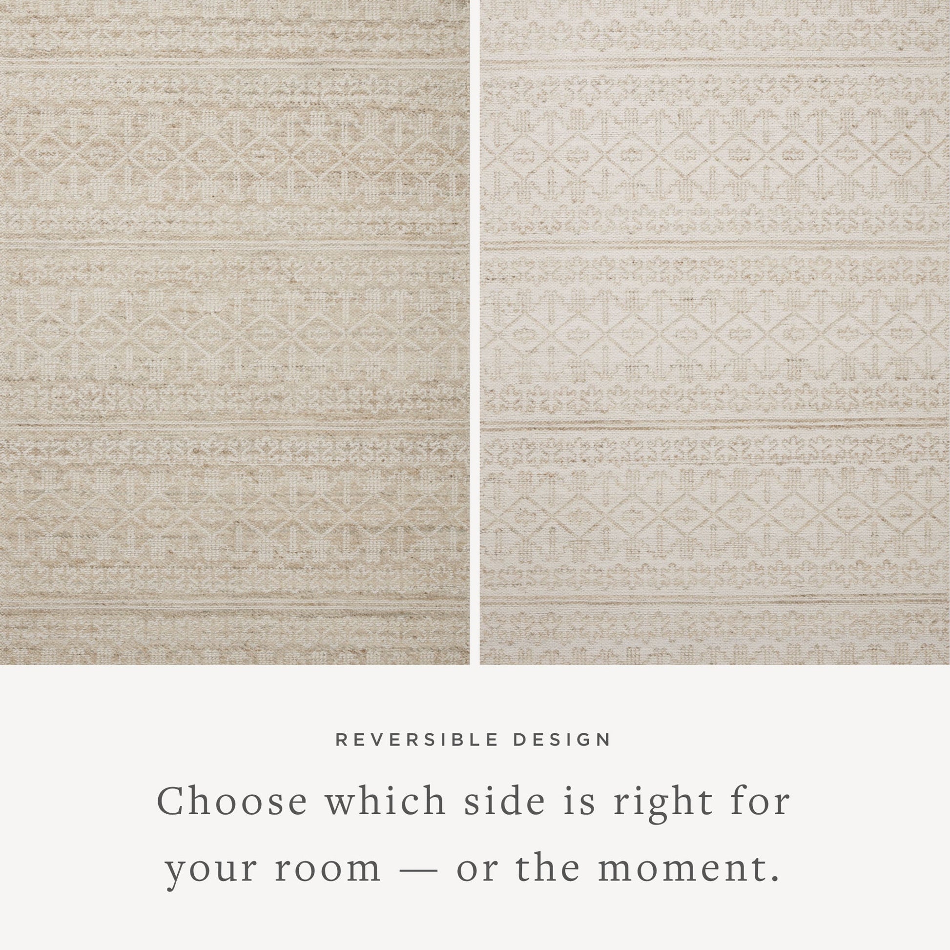 The Rivers Collection by Angela Rose x Loloi is a modern flatweave area rug with a reversible design featuring symmetrical motifs. Woven of wool, cotton, and jute, Rivers combines natural materials with an airy, natural aesthetic. The soft colors of the rug create a watercolor effect that adds artful depth to the neutral palette. Made in India and GoodWeave-certified, ensuring our commitment to ethical production and the support of weavers' communities.