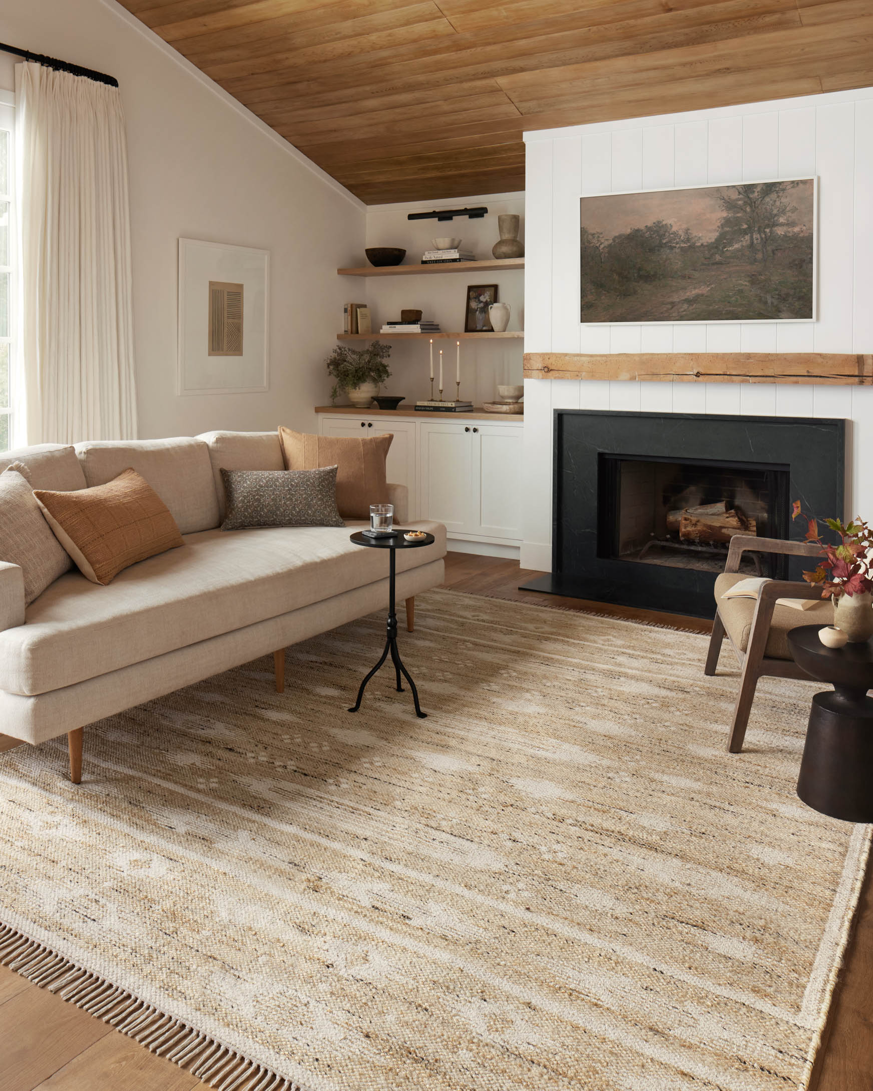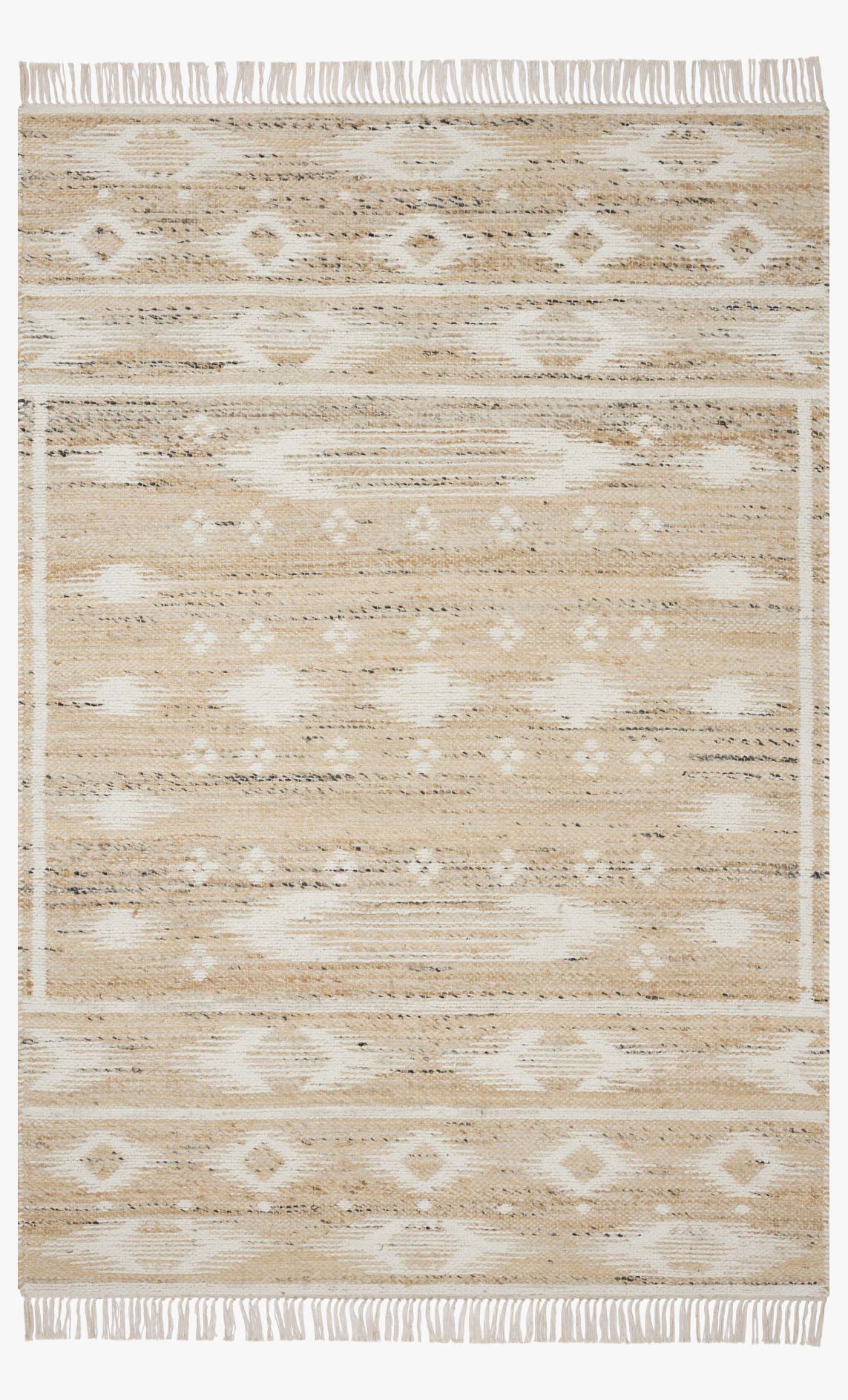 The Rivers Collection by Angela Rose x Loloi is a modern flatweave area rug with a reversible design featuring symmetrical motifs. Woven of wool, cotton, and jute, Rivers combines natural materials with an airy, natural aesthetic. The soft colors of the rug create a watercolor effect that adds artful depth to the neutral palette. Made in India and GoodWeave-certified, ensuring our commitment to ethical production and the support of weavers' communities.