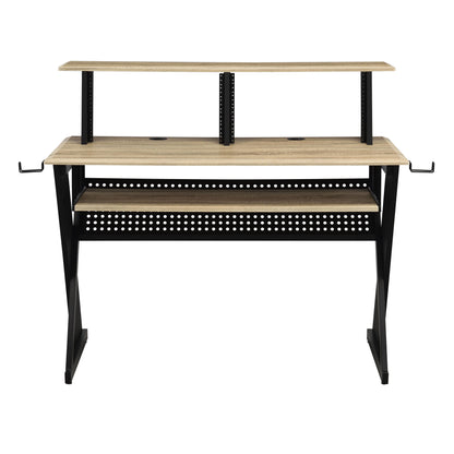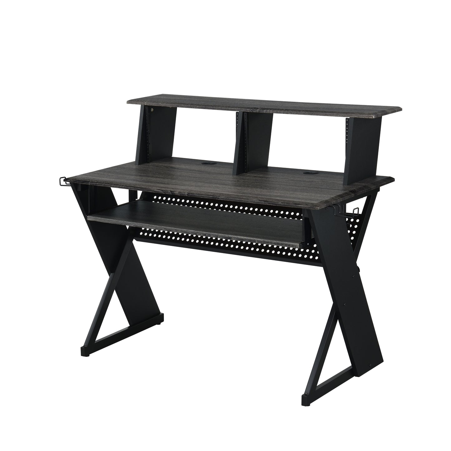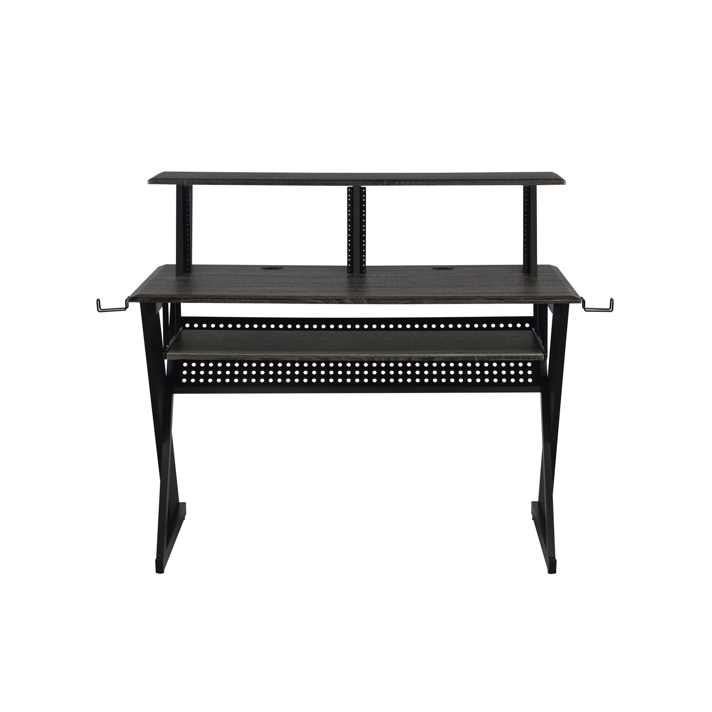 Keep your recording studio space organized while you create musical masterpieces with the Annette music desk. Smaller in size yet still powerful, the desk can securely hold all your equipment and gear. The shelf can be used to mount a monitor and speakers. The pullout keyboard tray smoothly glides in and out with ease.