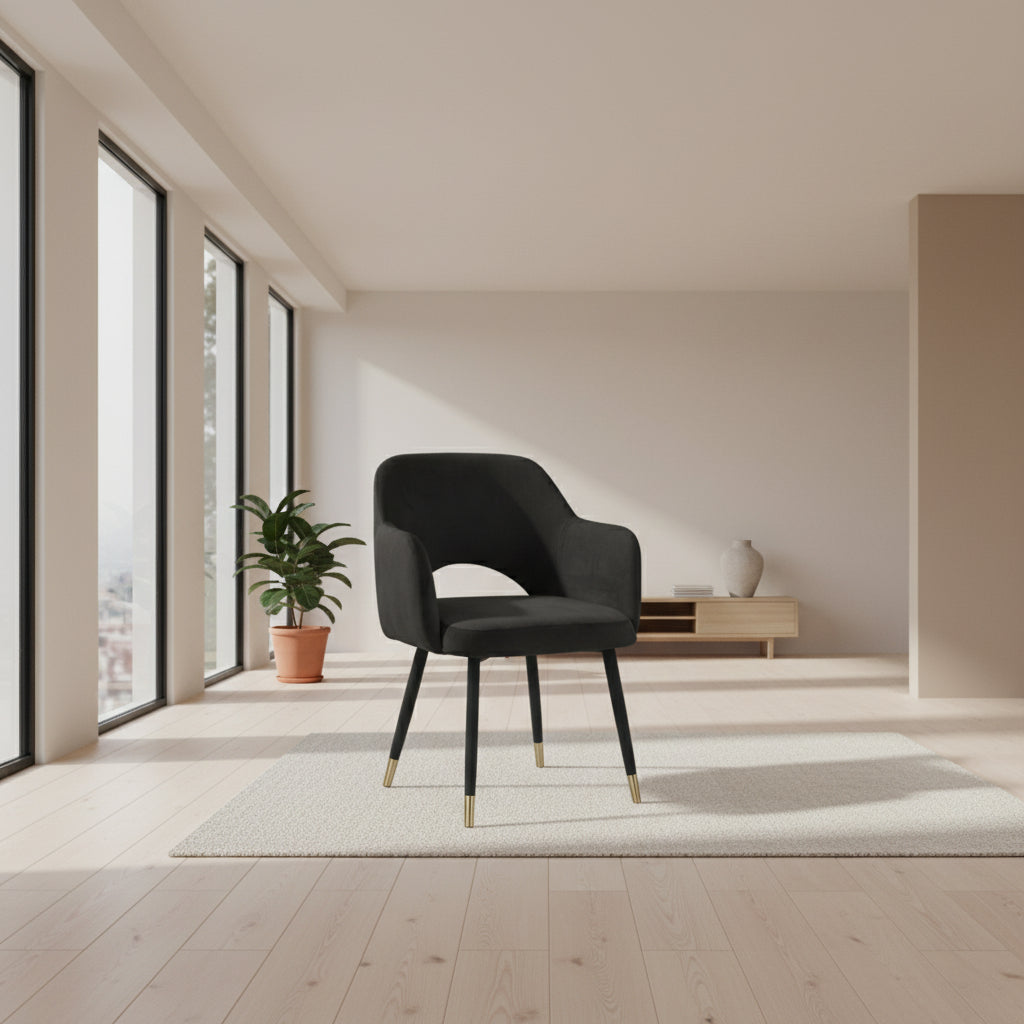 This Applewood accent chair is the perfect piece to add life to any room. It will give your space an instant makeover. Featuring a luxurious ocean blue velvet that screams indulgence. Its tight mid-back barrel backrest with an open frame is the ideal contemporary shape for a modern home. Displaying spindle legs with a glistening golden tip. Available in four colors