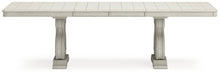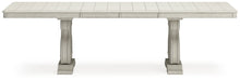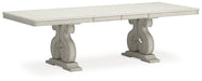Add a touch of romance to your home with this dining extension table. The painted finish and shapely silhouette are all about easy elegance. Turning the focus on the double sculptural pedestal base, this graceful table adds a dash of upscale luxury to the dining experience.| Full Dimension | 44W x 108.25D x 30.5H |
