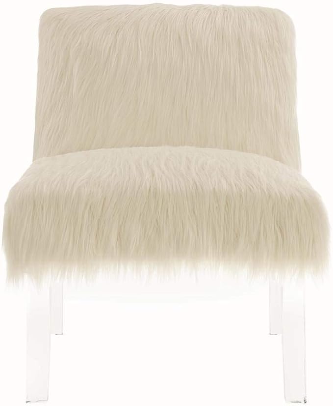 Faux Sheepskin Accent Chair White & Clear