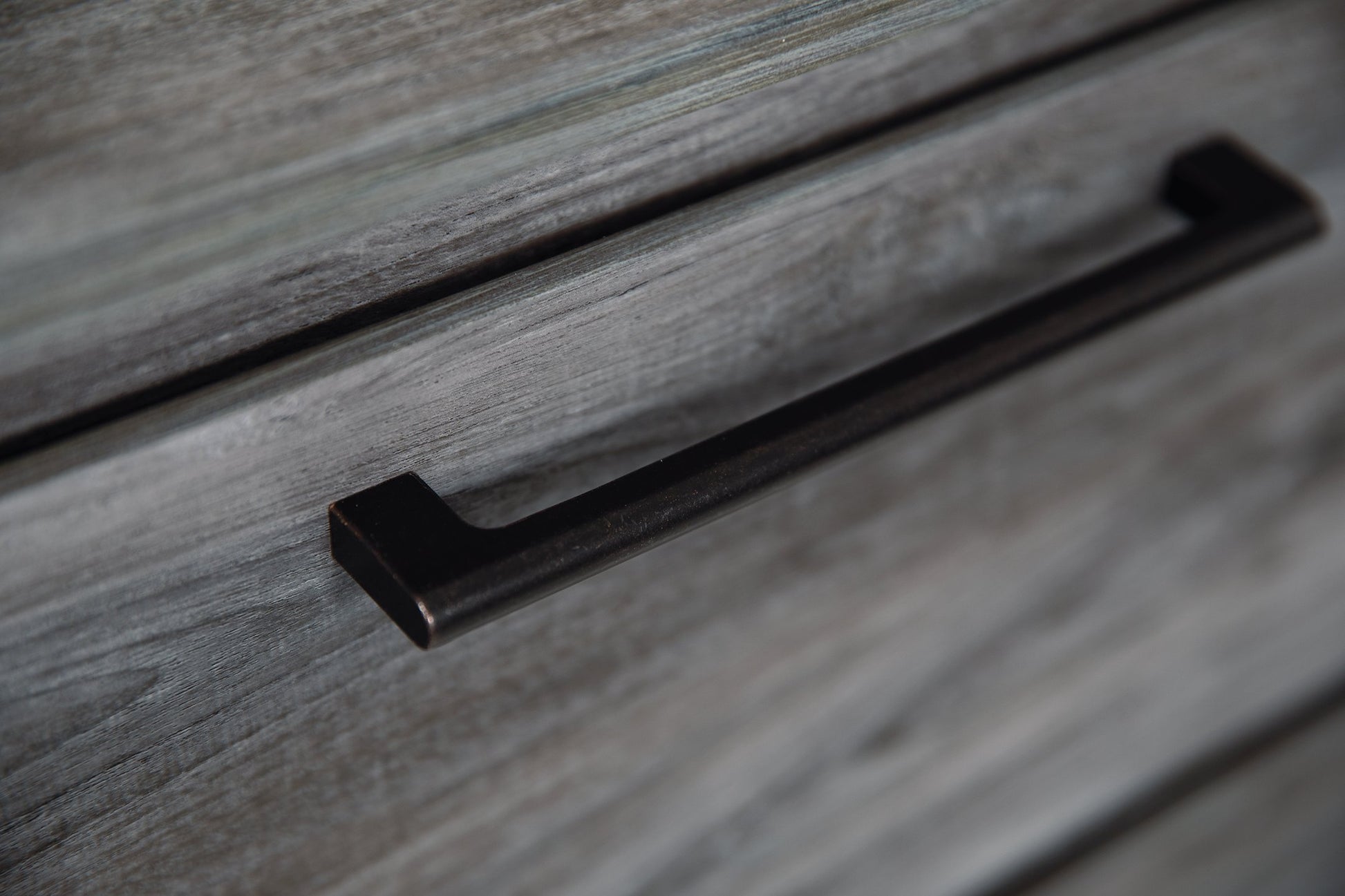 Casually cool style and lots of storage go hand in hand with this dresser with mirror. Its driftwood and smoky finish create an easy-going vibe that's perfect for setting the scene of a relaxed getaway. Six roomy drawers give you the space needed for stowing away clothes and more. Clean lines and modern handles provide a fuss-free look.