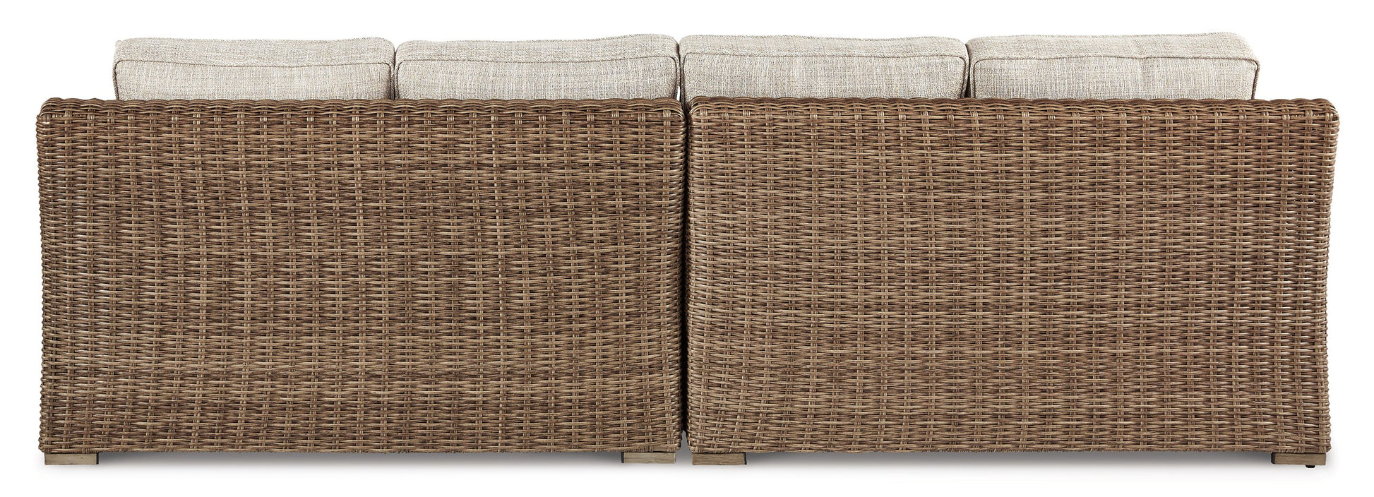 Sporting an easy-on-the-eyes look inspired by driftwood, this 2-piece sectional elevates the art of indoor-outdoor living. Beautiful and durable enough for indoor and outdoor use, the high-style/low-maintenance sectional entices with plush, removable cushions wrapped in Nuvella® fabric that’s a breeze to keep clean.| Full Dimension | 107W x 38D x 35H |