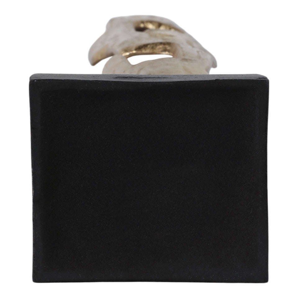 Make a statement with the 32" Bedford Gold Wood Statuary. This vertical, abstract sculpture features flowing organic curves and open forms, crafted from wood with a luxurious gold finish. Standing on a sturdy square dark base, it adds a sophisticated artistic touch to any tabletop, shelf, or console.