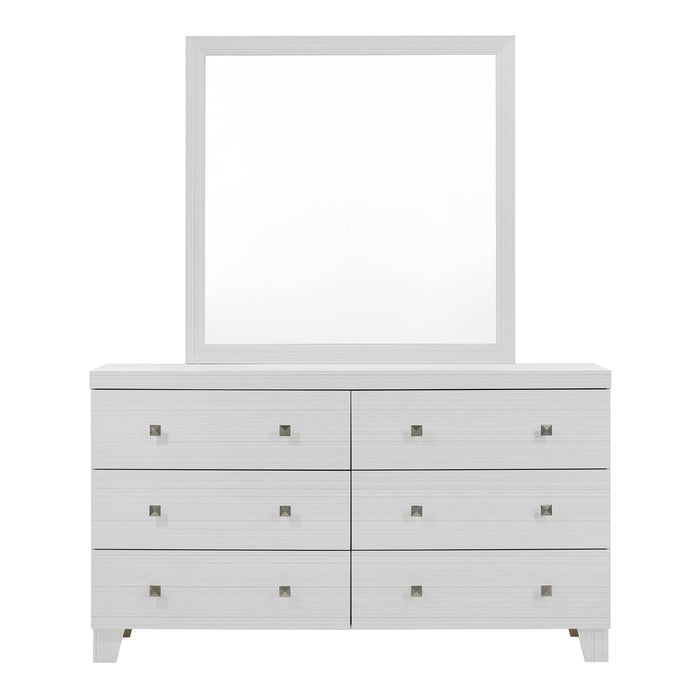 The white finish with paper veneer will easily pair with any existing pieces or decor you have. Sleek, clean lines are featured from top to bottom giving this glam design mirror a look that you will love day after day. Add the Icon Mirror to your home today and feel like the queen that you are!