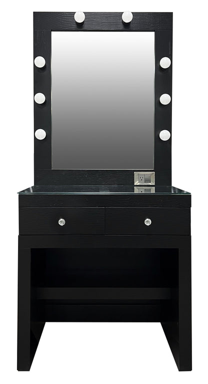 This beautiful Betsy vanity set with its glossy finish & LED Light bulbs will make a fabulous addition to any beauty room! The black vanity table is designed with two spacious drawers & tabletop, bringing super large storage space for your cosmetics, jewelry, hair accessories, and beauty supplies.