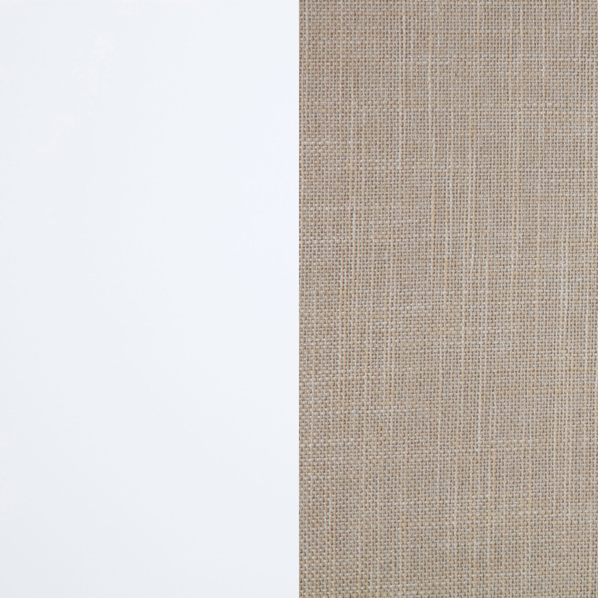 Fresh, modern coastal style brings inspired character to a contemporary wooden bed. Designed with an upholstered headboard with foam cushioning for indulgent lounging, it boasts a clean white finish for a light, airy ambiance in your bedroom. The gently flared headboard features a double panel design, complete with linen-colored fabric that adds a touch of contrast. The bed boasts a wooden frame with low rails and footboard with a slight ledge design that adds detail. Tapering legs complete the look while levelers offer stability on any flooring.