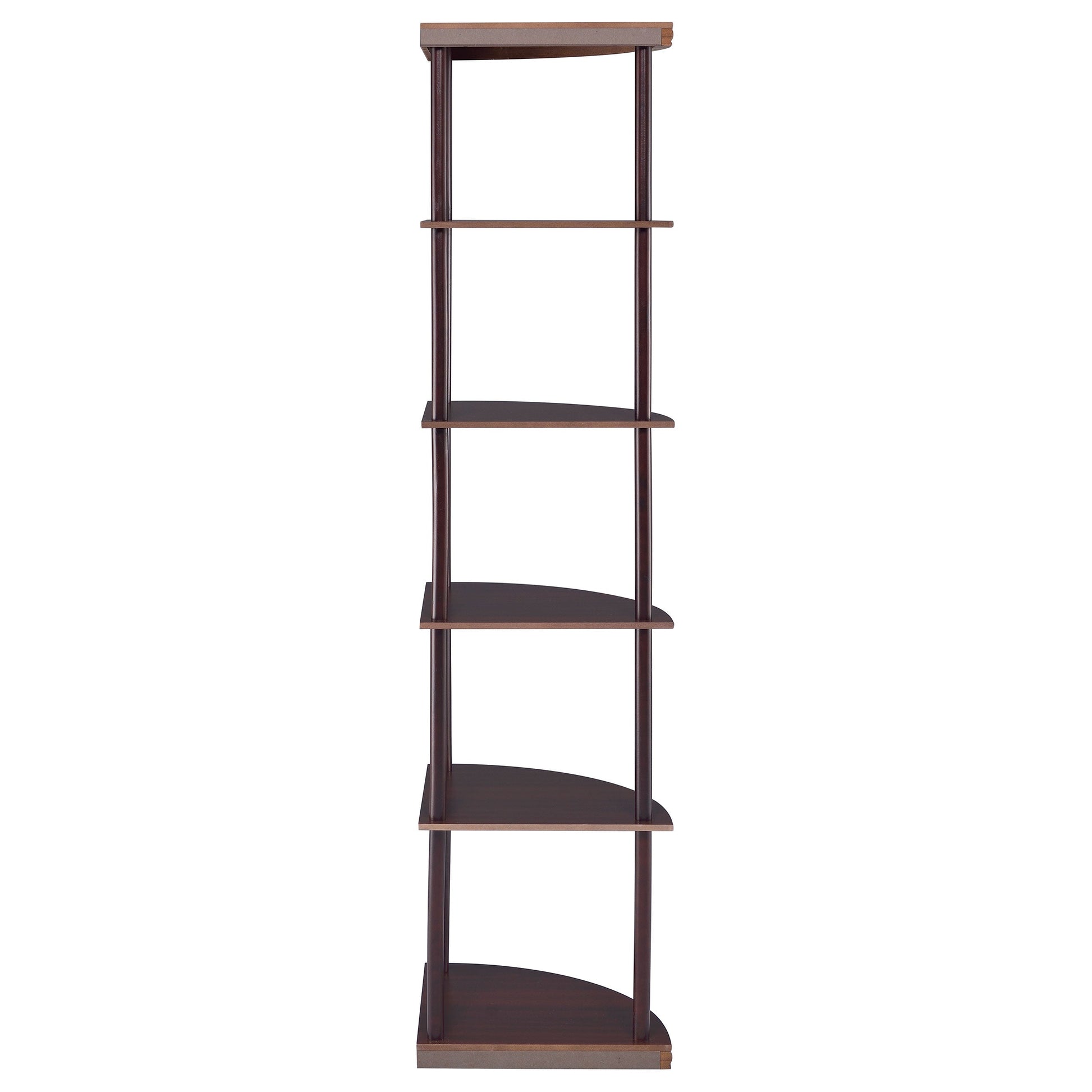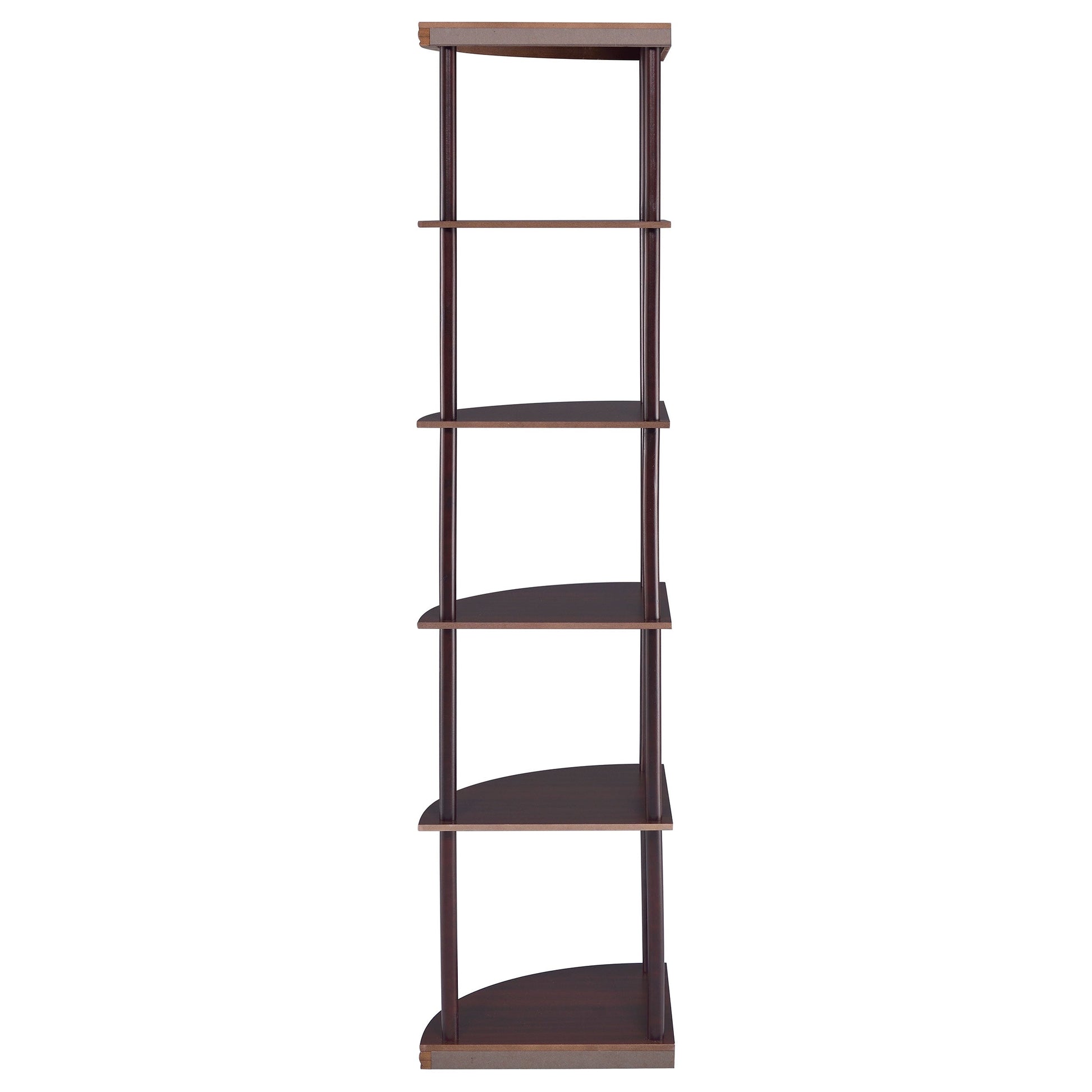 Classy and compact, this four-tier bookcase is a convenient option for a small space. It's designed to fit easily into a corner for space-saving convenience. Made from rubberwood and other high-quality materials, it provides a safe, sturdy spot to display books and keepsakes. A warm, rich cappuccino finish adds elegance and depth. Whether placed in a bedroom, den, or office, this bookcase is sure to enhance any room.