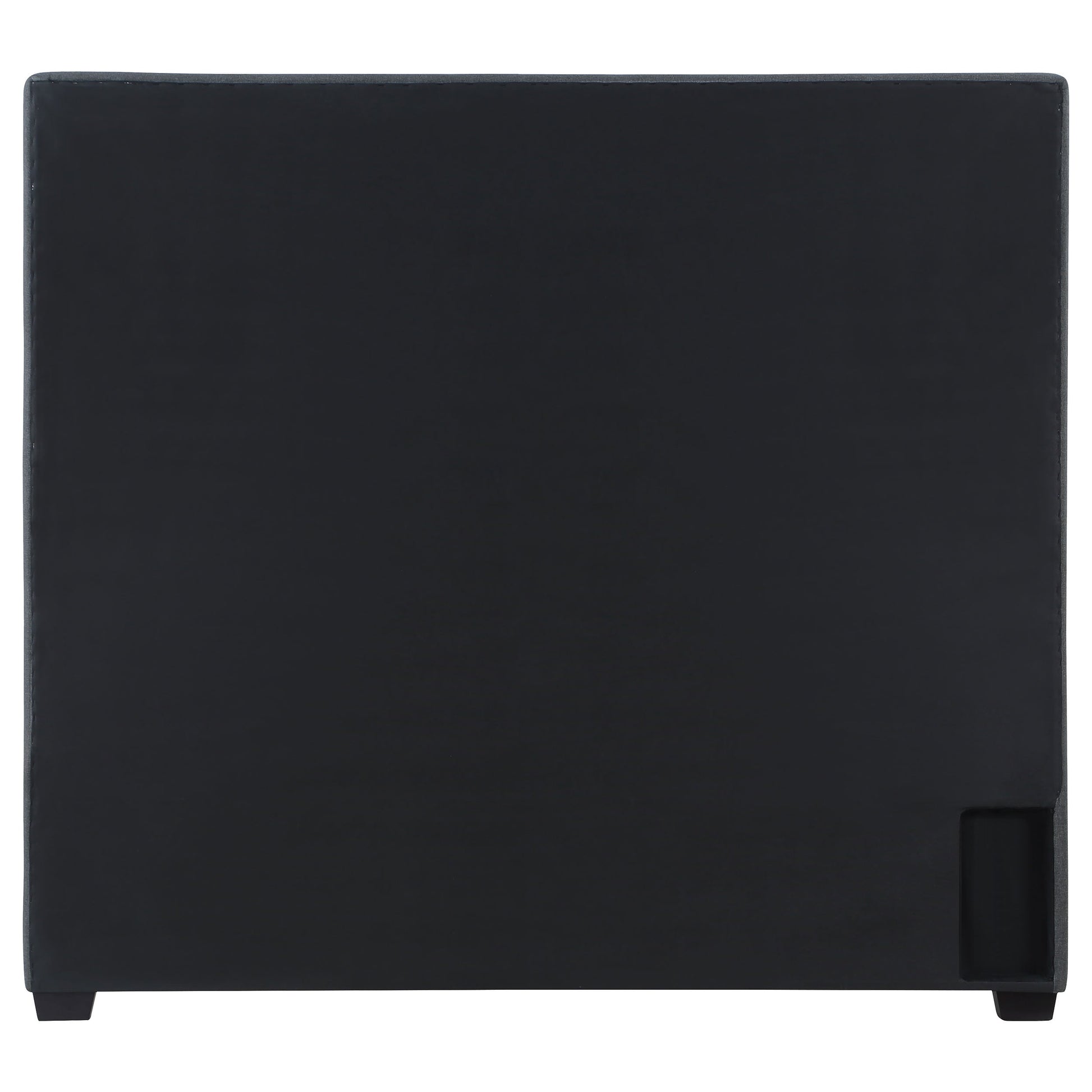 Treat a master or bedroom suite to the ultimate in Art Deco flavor with a plush, enticing panel bed. Designed to infuse romance and artistry, this decadent bed is wrapped in charcoal linen-like fabric. Its construction features a mix of hardwoods and wood products. An extra tall headboard presents a showcase vibe with a scalloped pattern created using individually hand-driven nail heads as an outline. Matching padded side rails and footboard complete the exquisite ambiance of a must-have anchor piece for a glam boudoir.